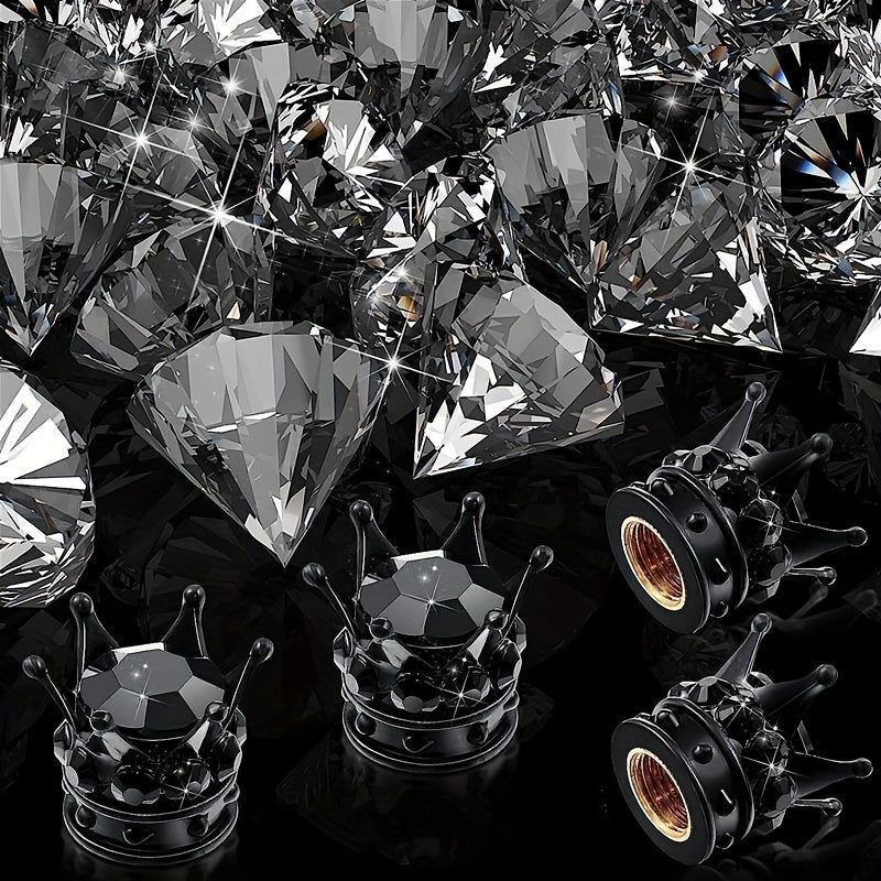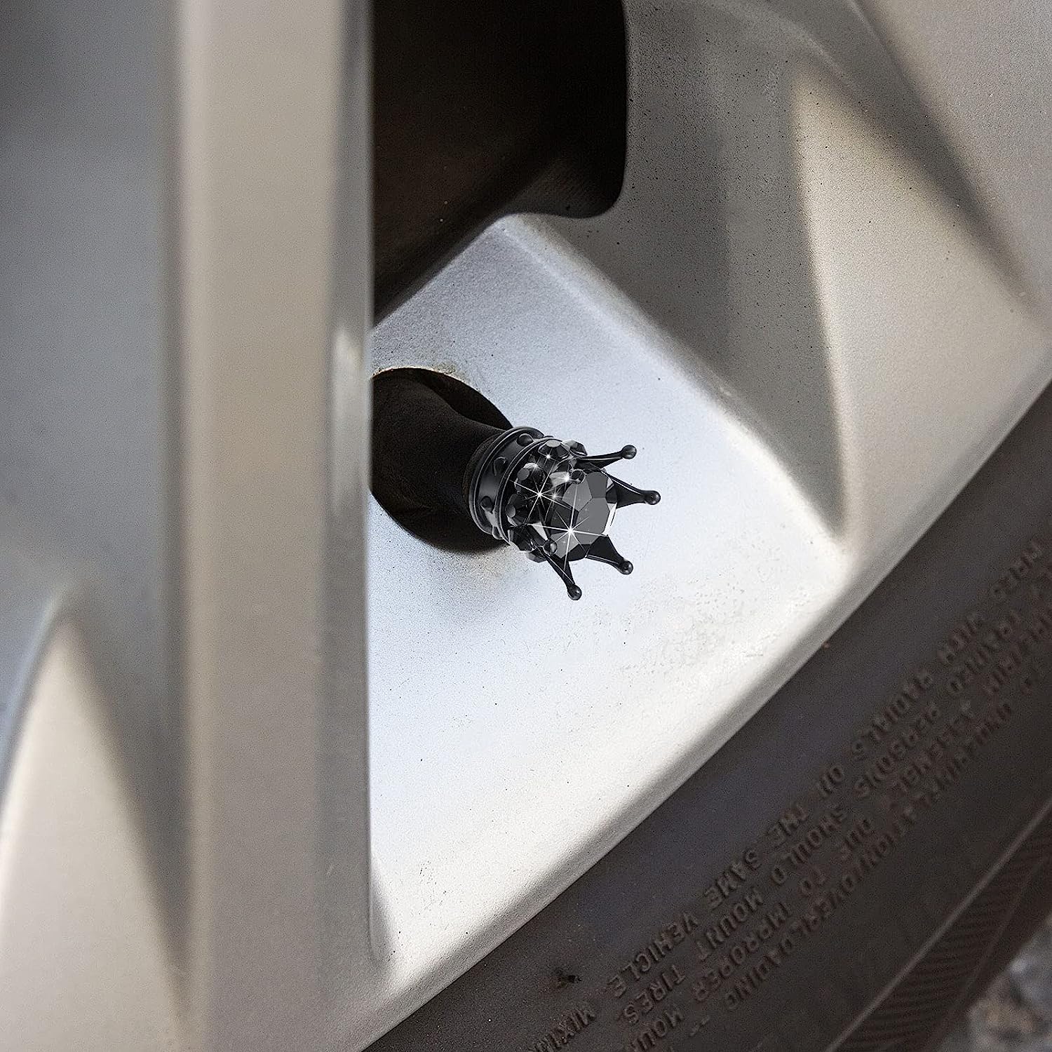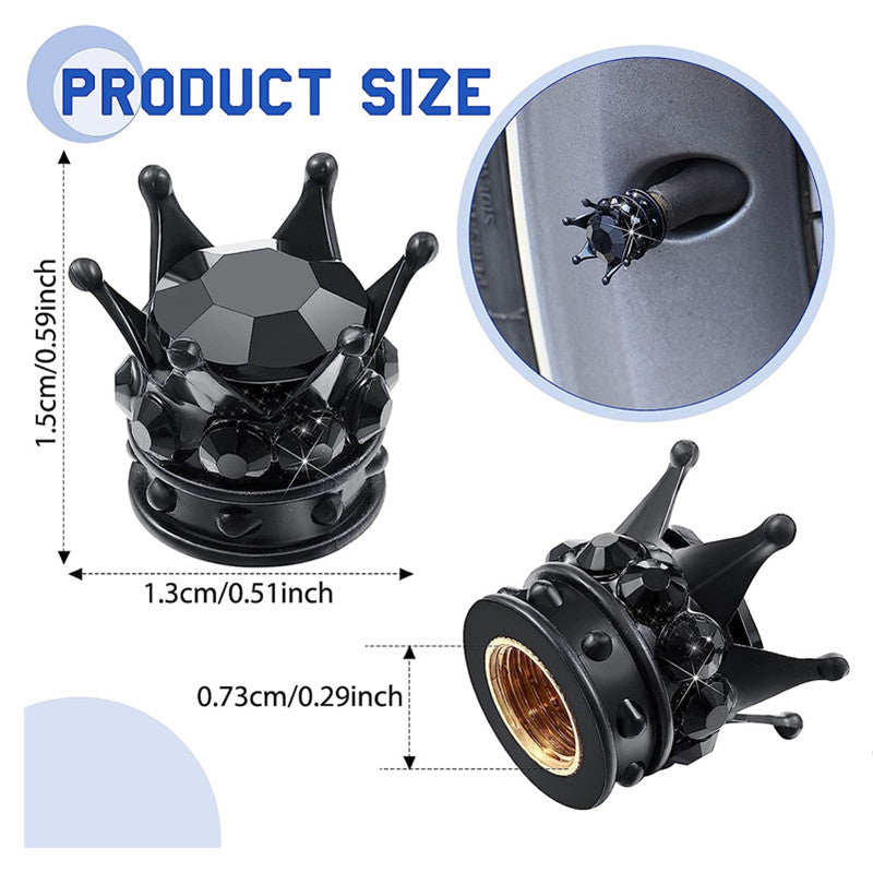 4pcs Crown Shaped Tire Valve Stem Caps Bling Rhinestone Chrome Car Accessories