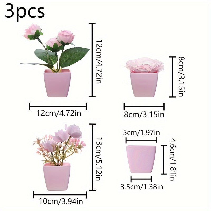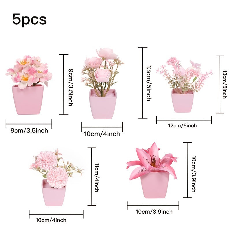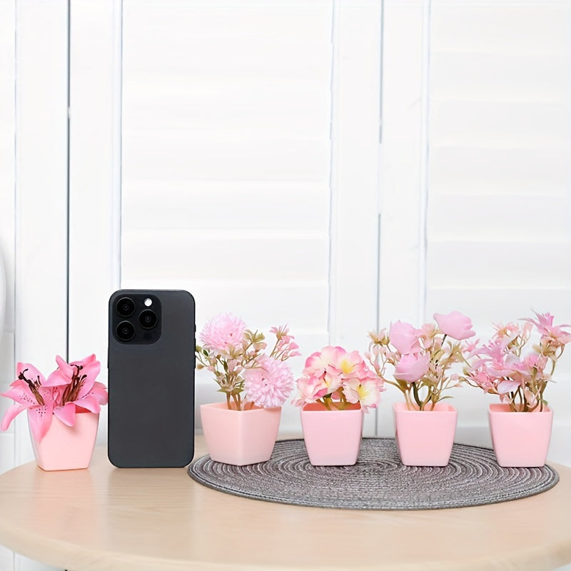 Mini Artificial Potted Flowers for Desktop Decoration Set of 5
