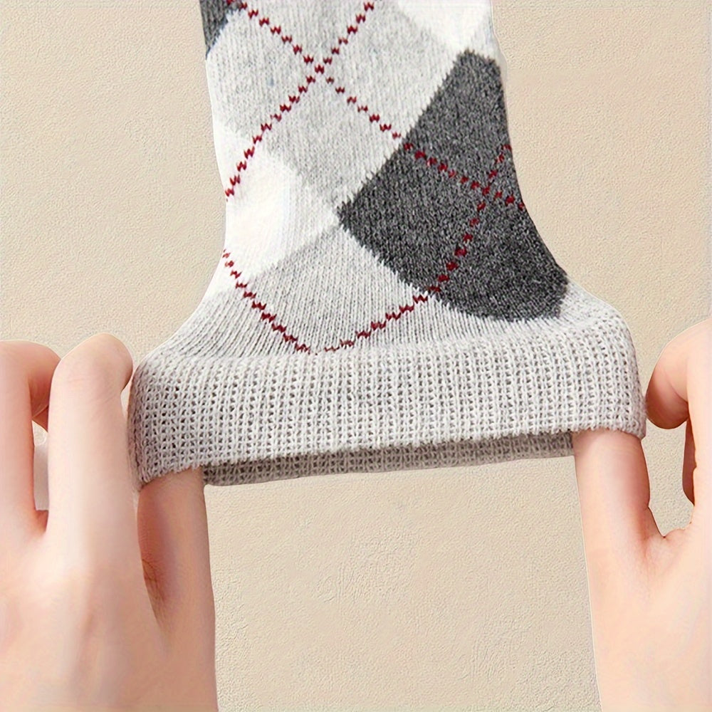 Men's Crew Socks 5 Pairs Geometric Pattern Breathable Polyester Spandex All Seasons