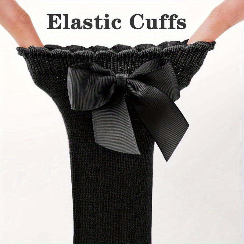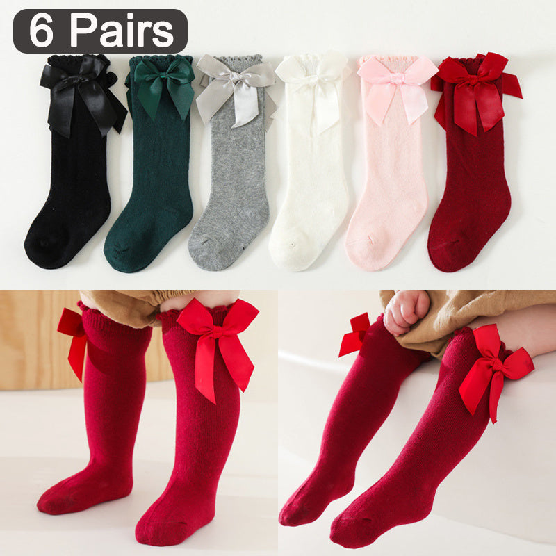 Kids Knee-High Socks for Girls 0-5 Years Cotton Ruffled Princess Bows Mix Colors