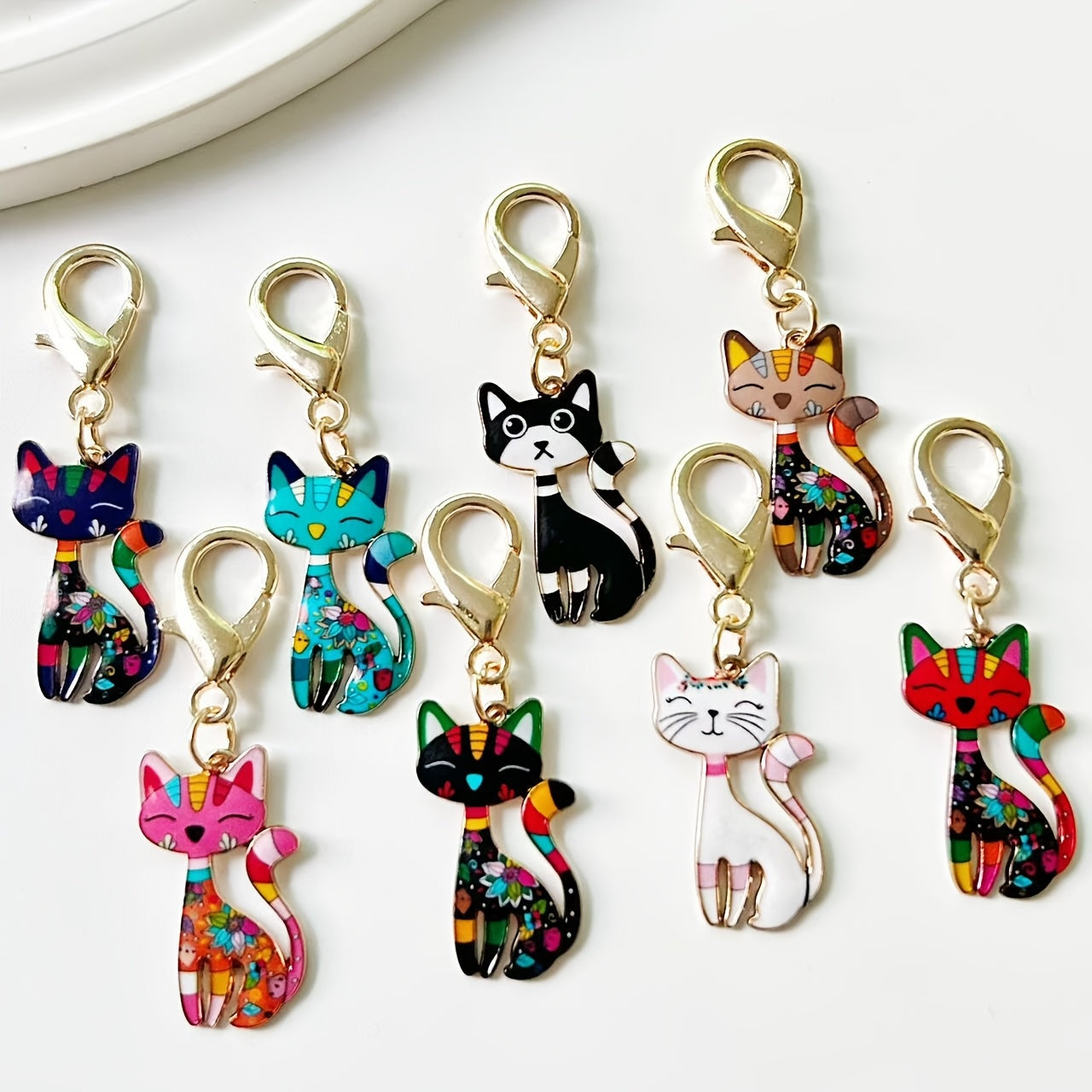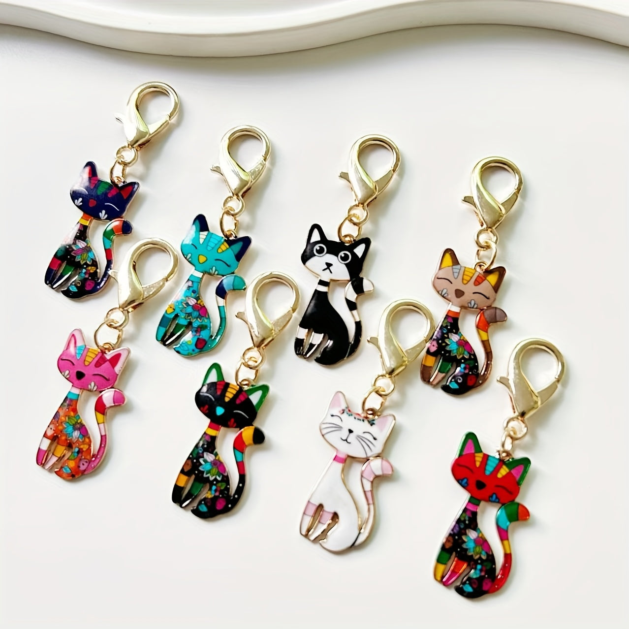 Cat-Shaped Keychains Set, Zinc Alloy, Cartoon Animal Pendants for Bags and Keys