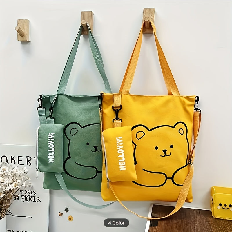 Cartoon Print Nylon Tote Bag with Large Capacity for Commuting Shoulder and Coin Bags