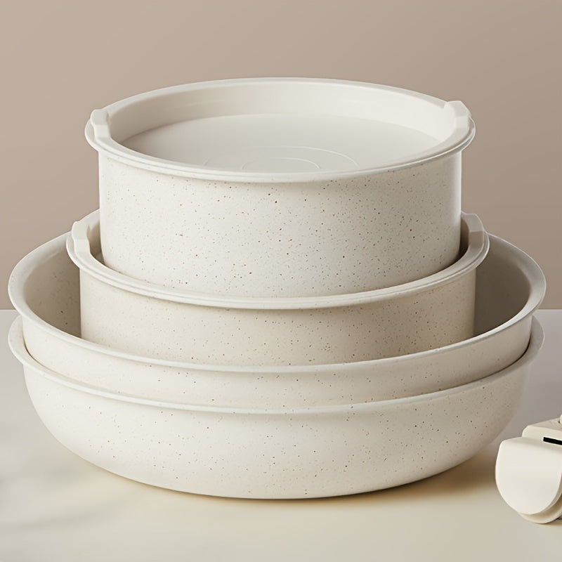 12-Piece Non-Stick Cookware Set with Removable Handles, Cream, Dishwasher Safe