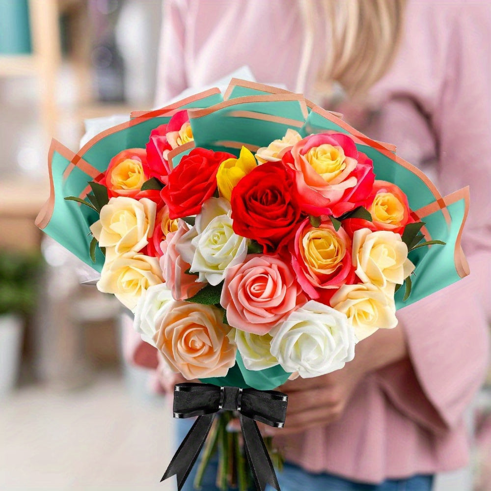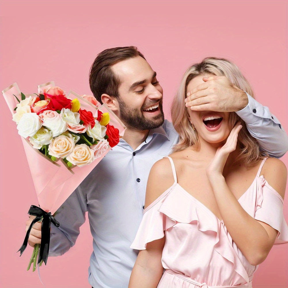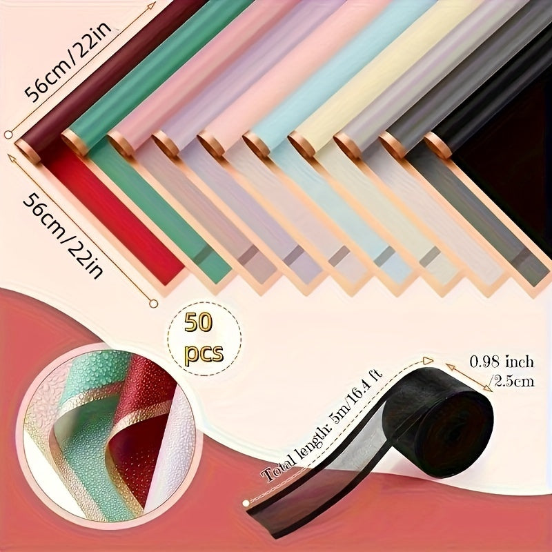 Assorted Flower Wrapping Paper Set with Gold Border and Korean Mesh for Bouquets and Gifts