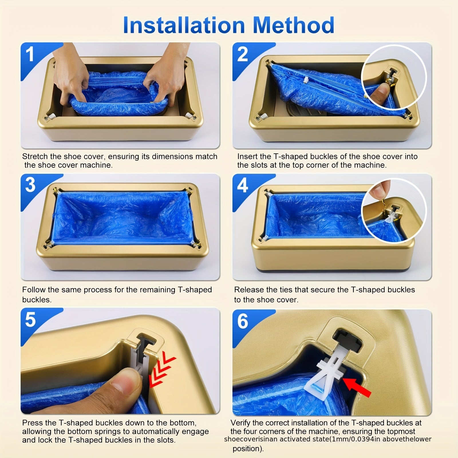 Automatic Shoe Cover Dispenser Plastic Carbon Fiber ABS Steel Frame Gold Finish