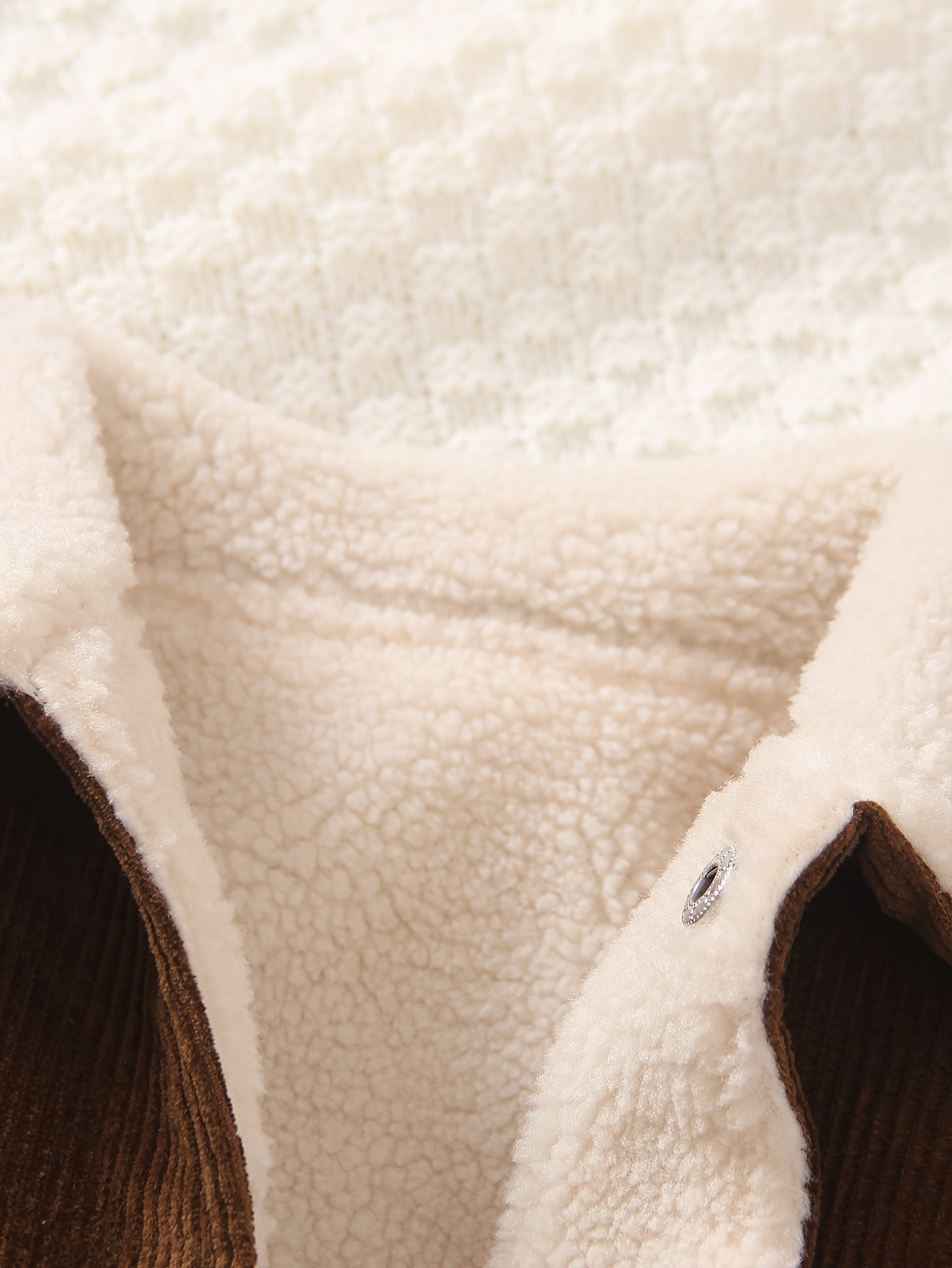 Baby Boy Corduroy Jacket with Fuzzy Lining, Button Front, Turndown Collar for Fall Winter Outdoor