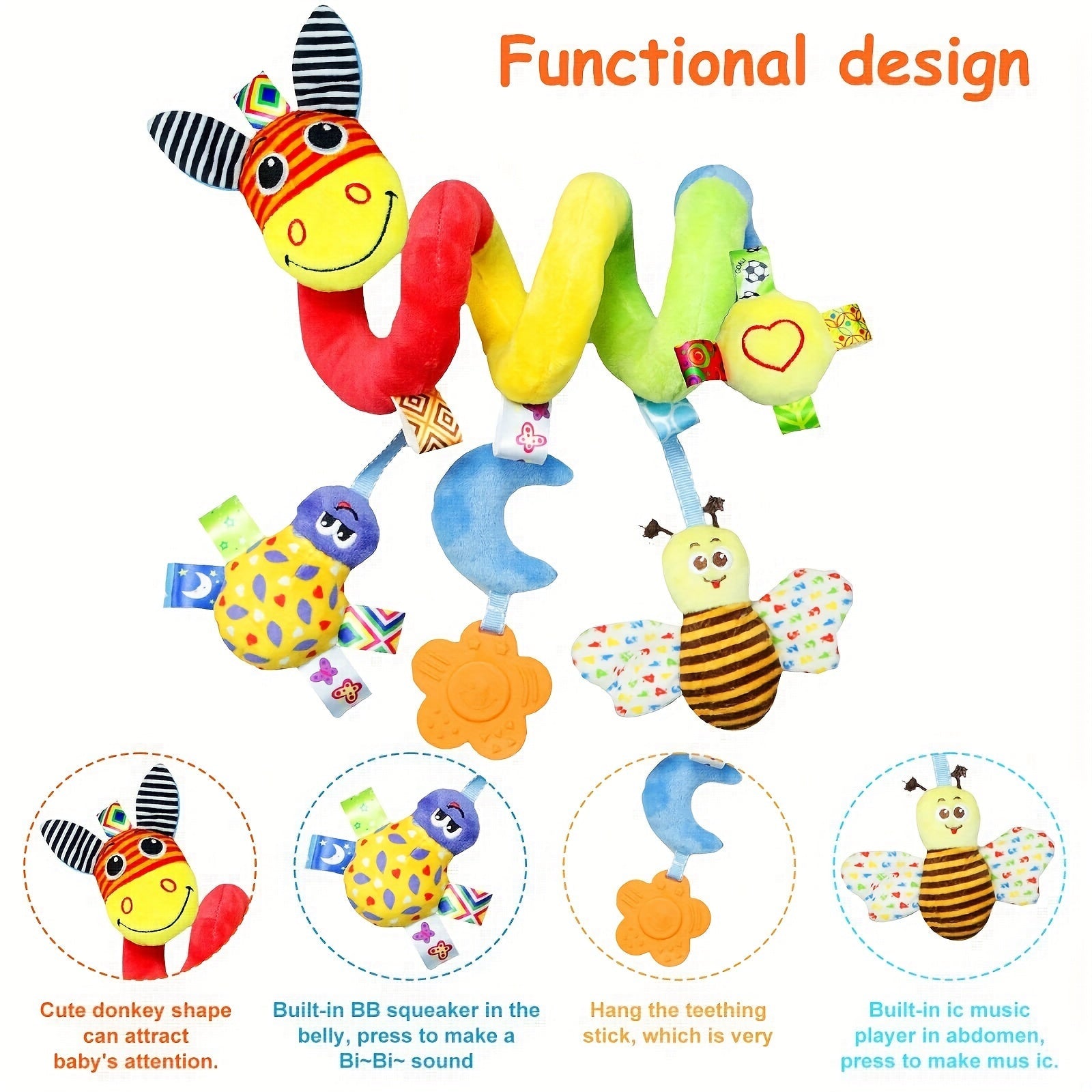 Baby Donkey Spiral Activity Toy for Car Seat Stroller Crib with Teether Rattle