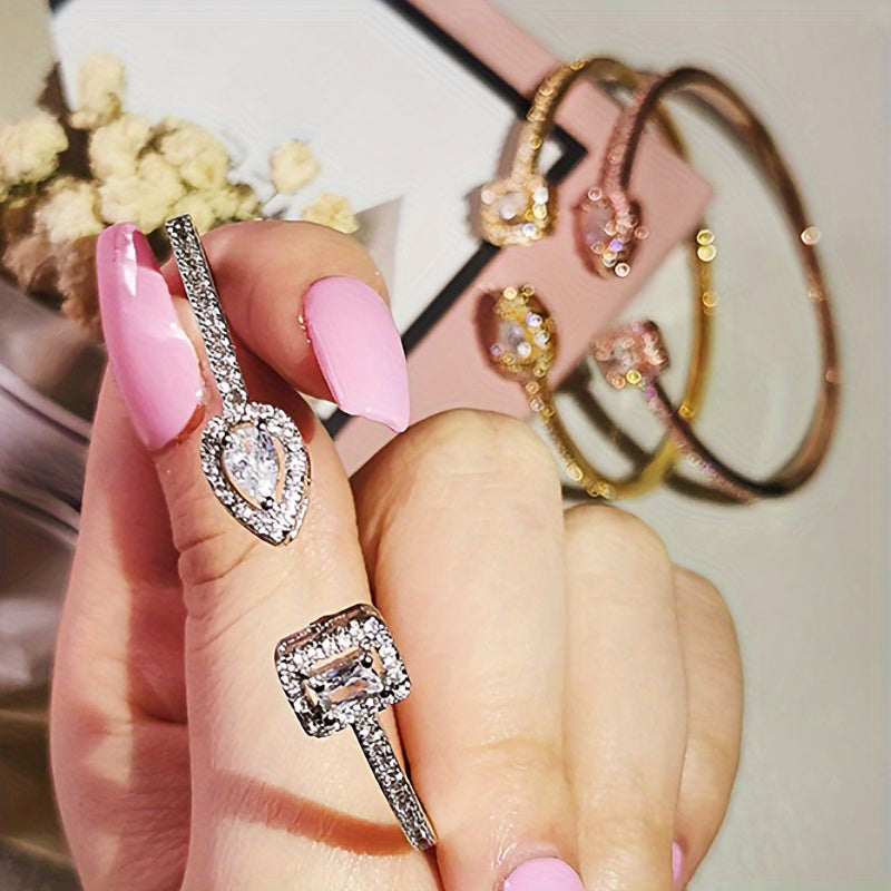 Women's Adjustable Bangle with Zirconia Gemstones for Parties and Gifts