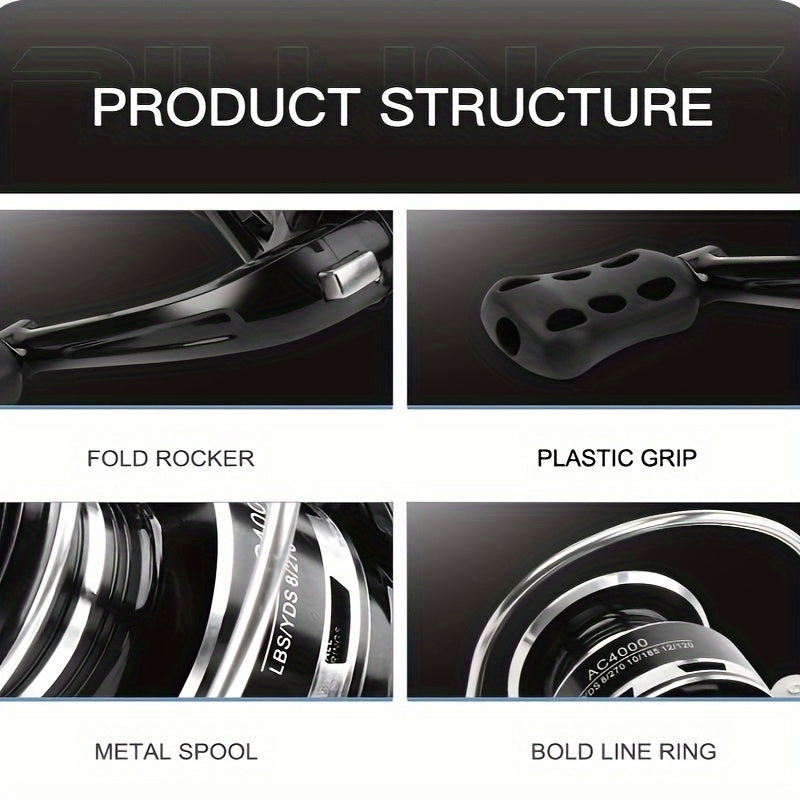 Spinning Fishing Reel 1000-7000 Series Aluminum Alloy Saltwater Freshwater 5.2:1 Gear Ratio