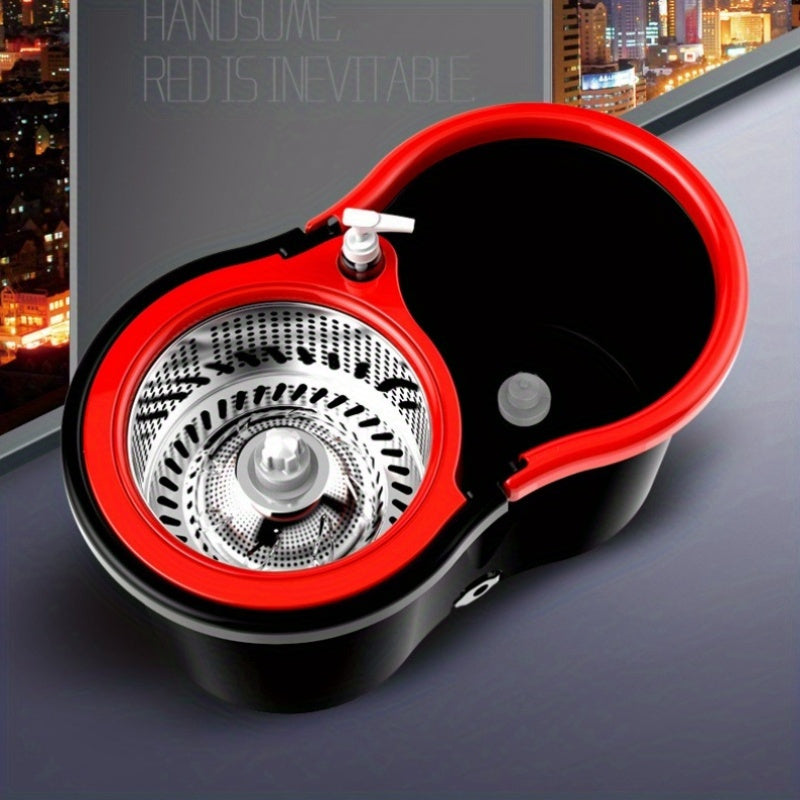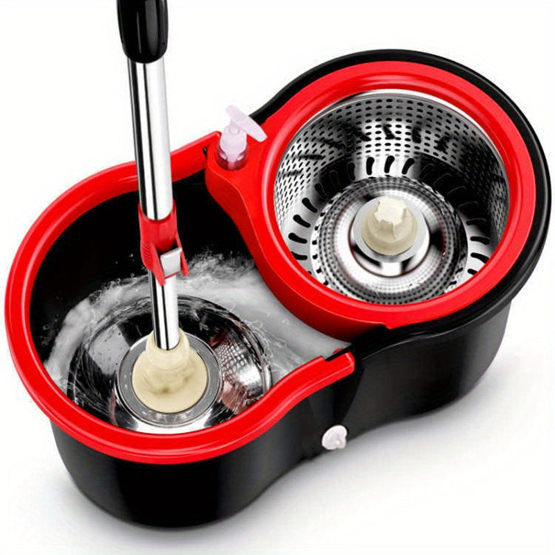 Black Steel Rotating Mop Bucket Set with Dual Drive Mop for Wet and Dry Cleaning