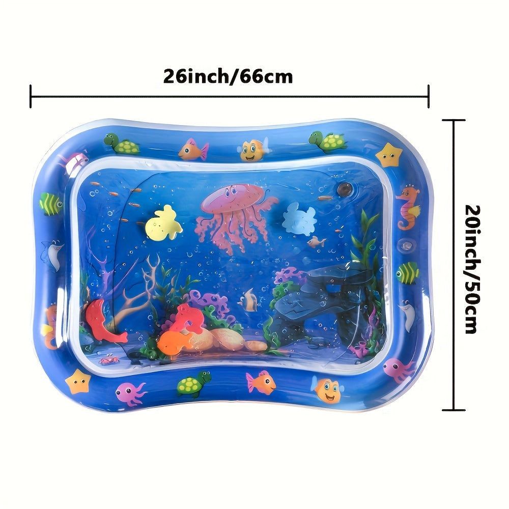 Infant Water Play Mat Blue PVC Tummy Time Water Mat with Floating Sea Creatures for Sensory Stimulation