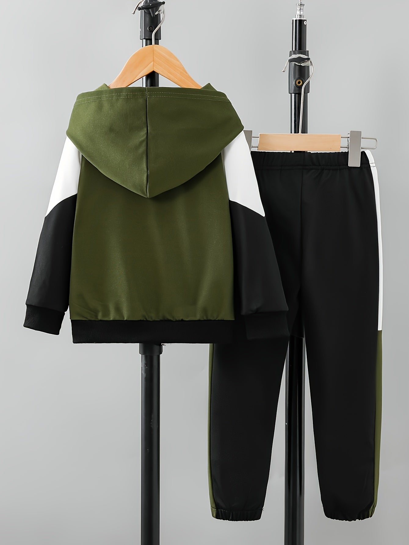 Kids' Hooded Jacket and Pants Set Fall Casual Stripes Polyester