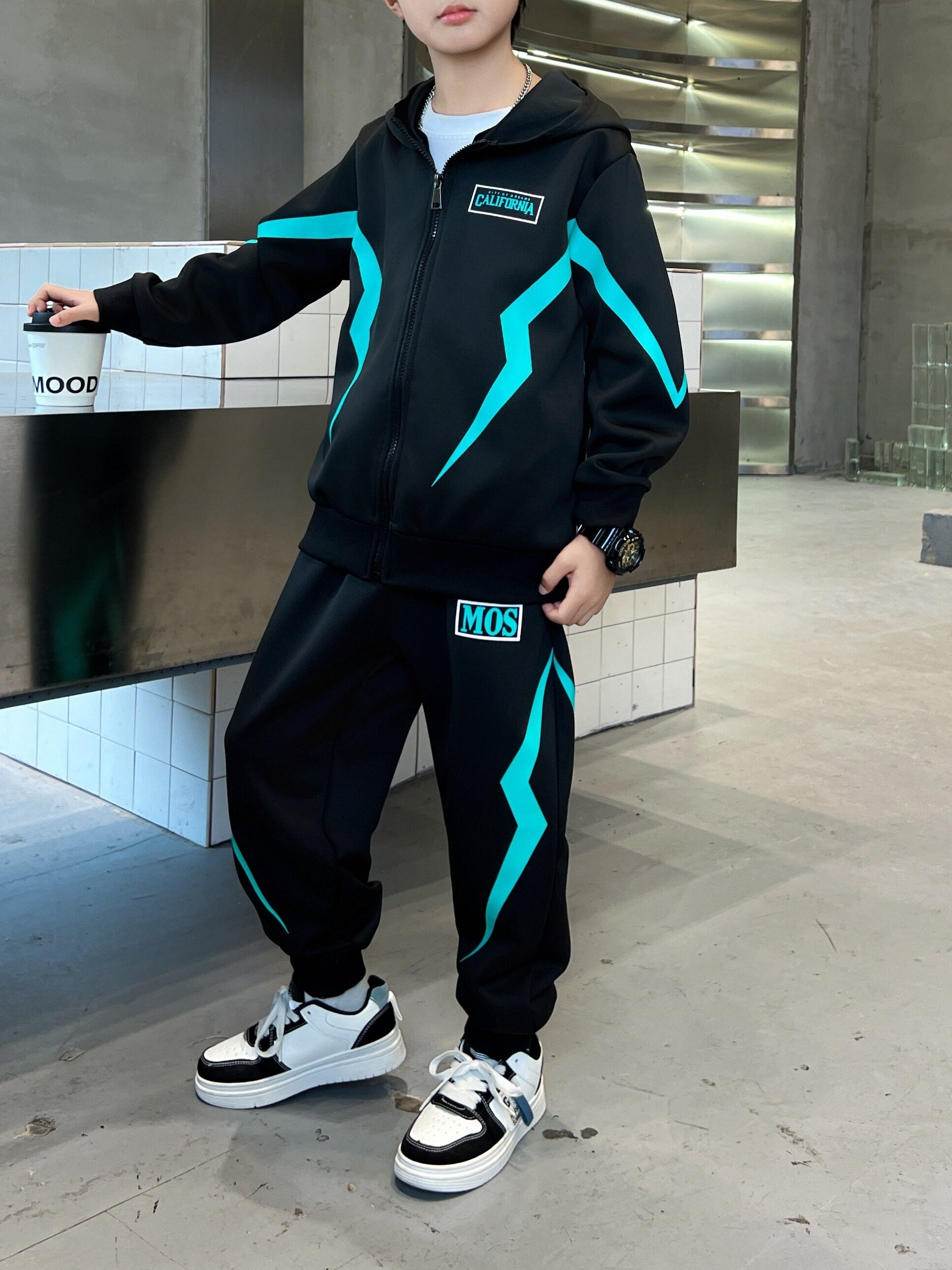 Boys' Spring Autumn Casual Outfit Set Hoodie and Pants Alphabet Pattern Kids' Knit Polyester