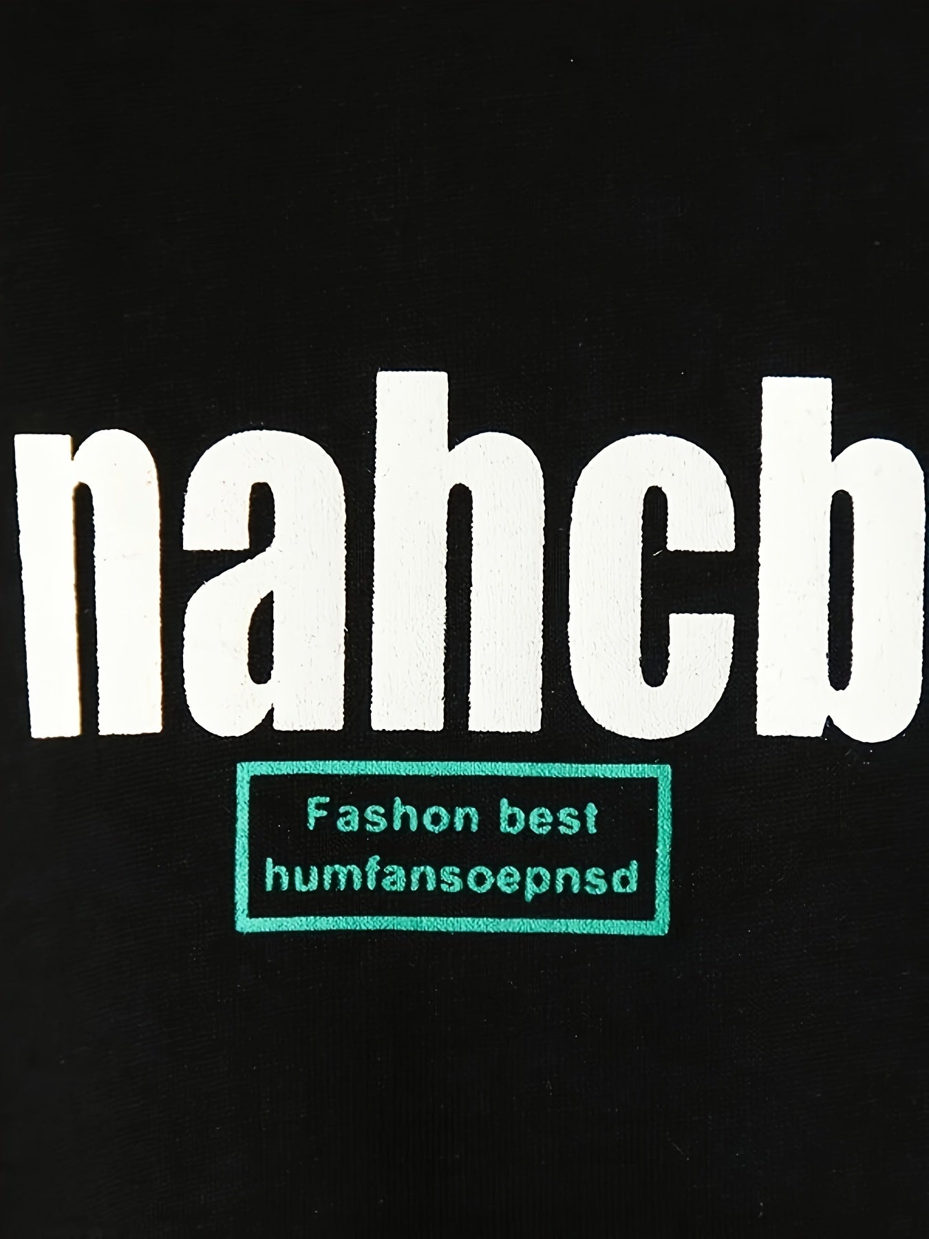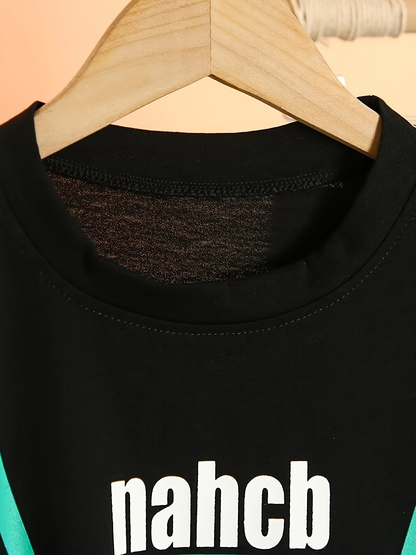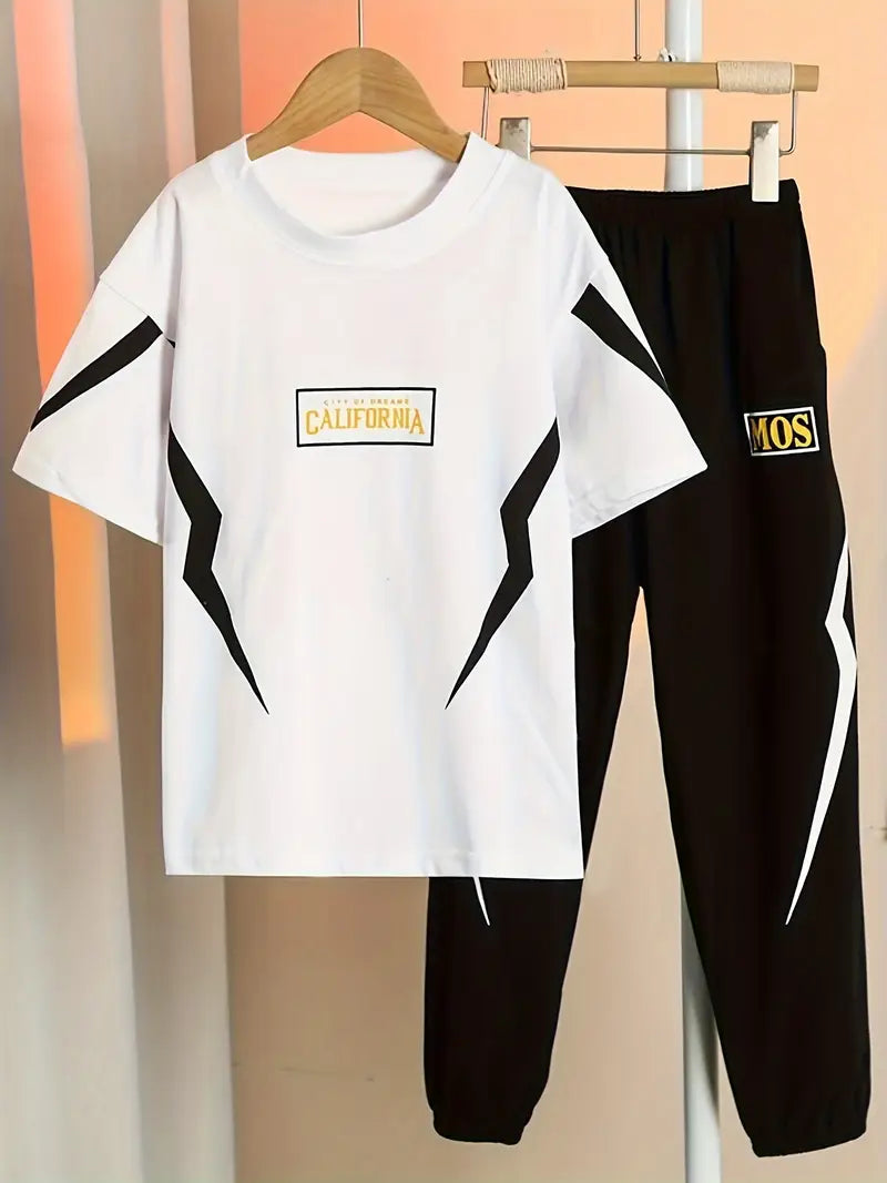 Boys' Medium-Large Sports Suit with Lightning Print Short Sleeve Long Pants Spring Summer Casual