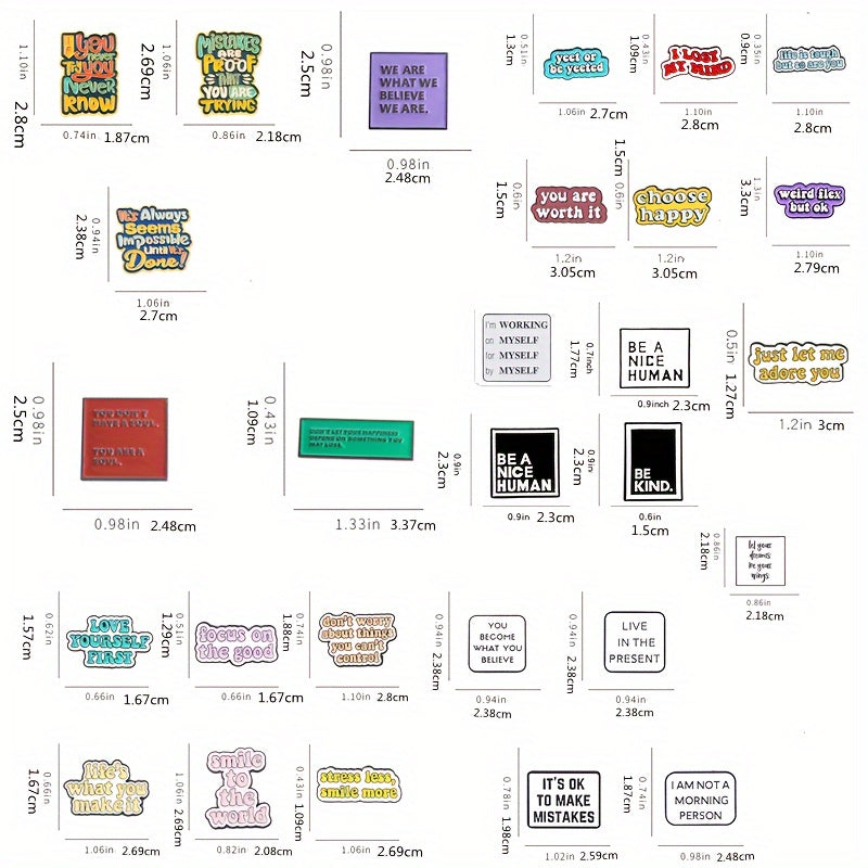 Set of Motivational Enamel Pins for Backpacks and Clothing, Durable Alloy, 10 20 or 30 Pieces