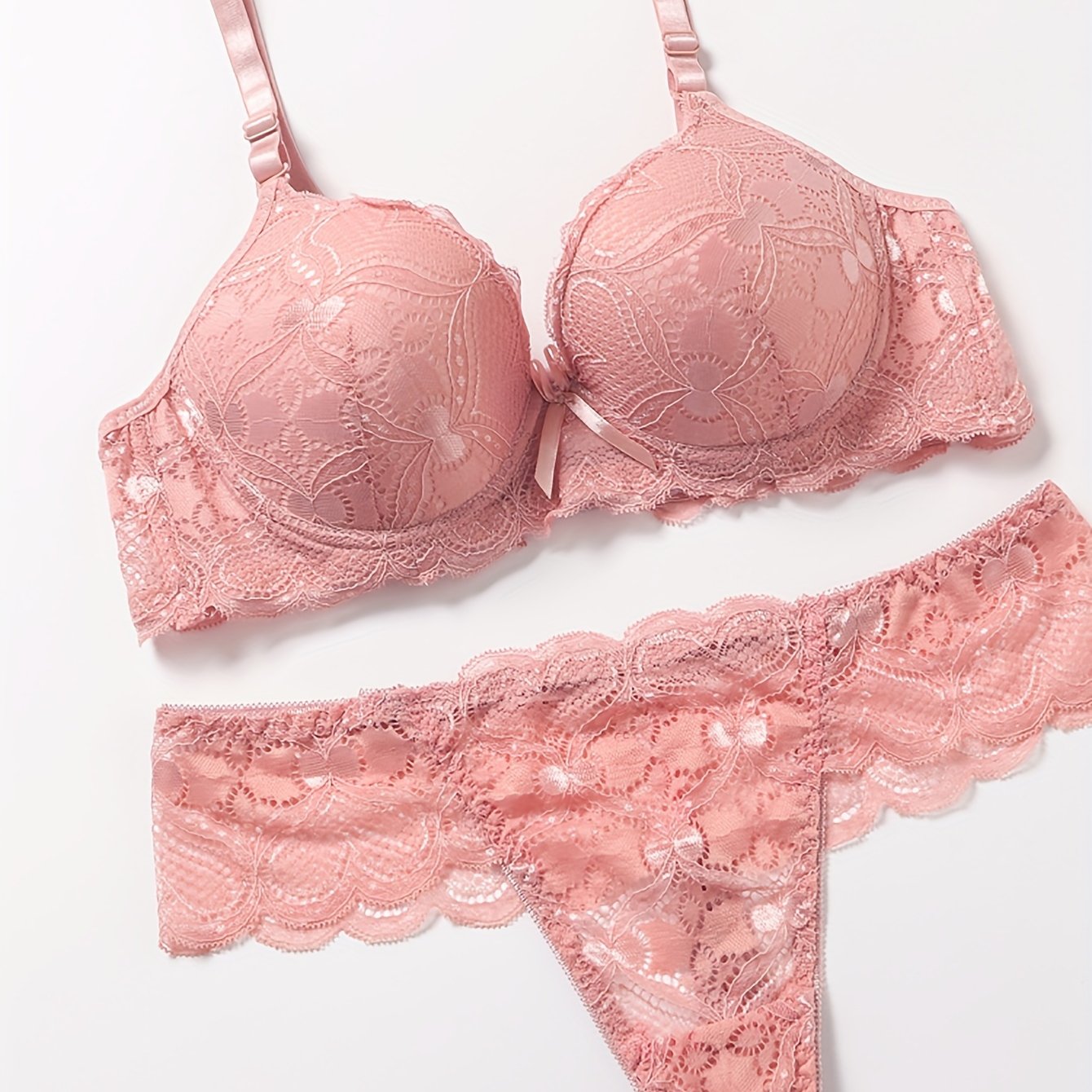 Women's Burgundy Red Lace Bra and Panty Set Spaghetti Strap Cheeky Thong Lingerie