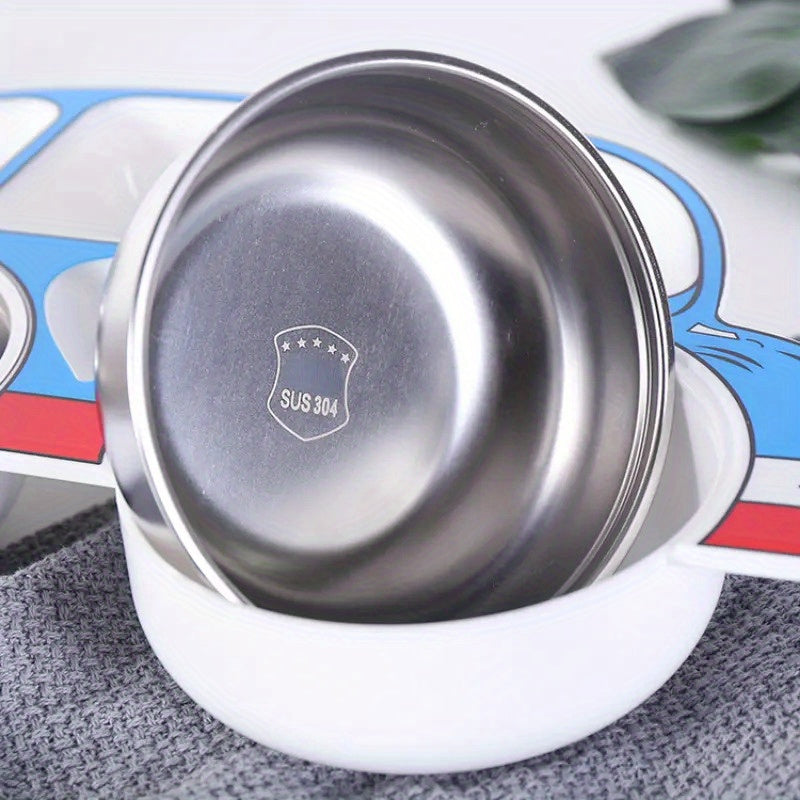 Kids Dinner Plate Set with Lid Stainless Steel Anti-Fall Red Blue