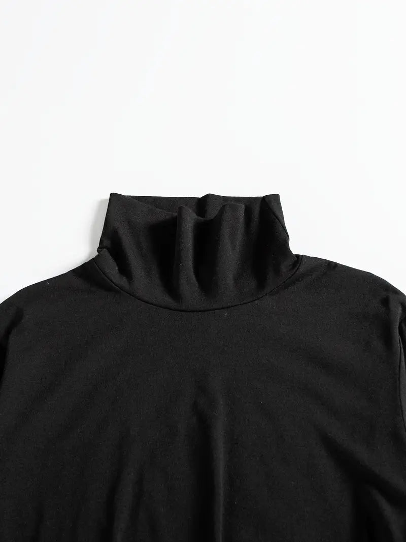 Women's Casual Long Sleeve High Neck Loose Dress Solid Color Polyester Knit
