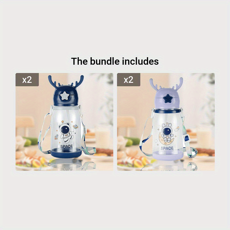 Kids Water Bottle 600ml Antler-Shaped with Straw Sturdy Eco-Friendly for Boys Girls