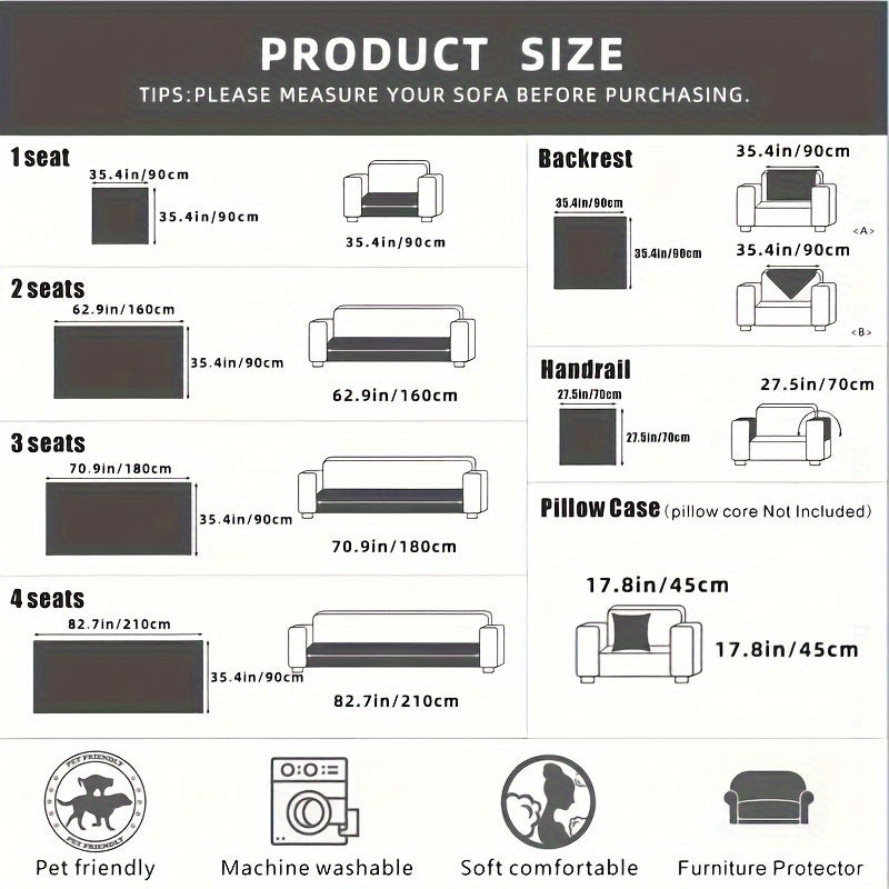 Chenille Sofa Cover for All Seasons Pet-Friendly Non-Slip Fits 1-4 Seater L-Shaped Contemporary