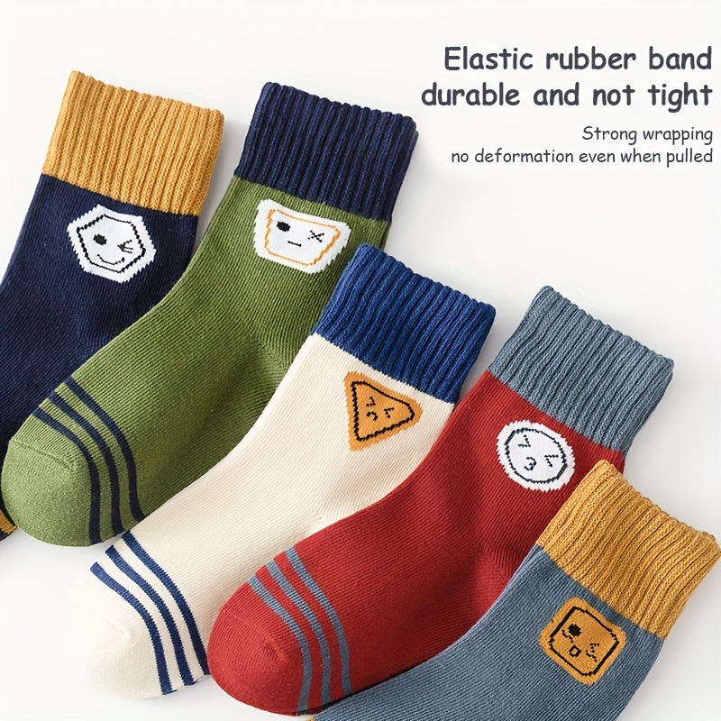 Kids Socks Set 5 Pairs Cartoon Pattern Knit Fabric Fall Winter Mid-Calf Unisex
