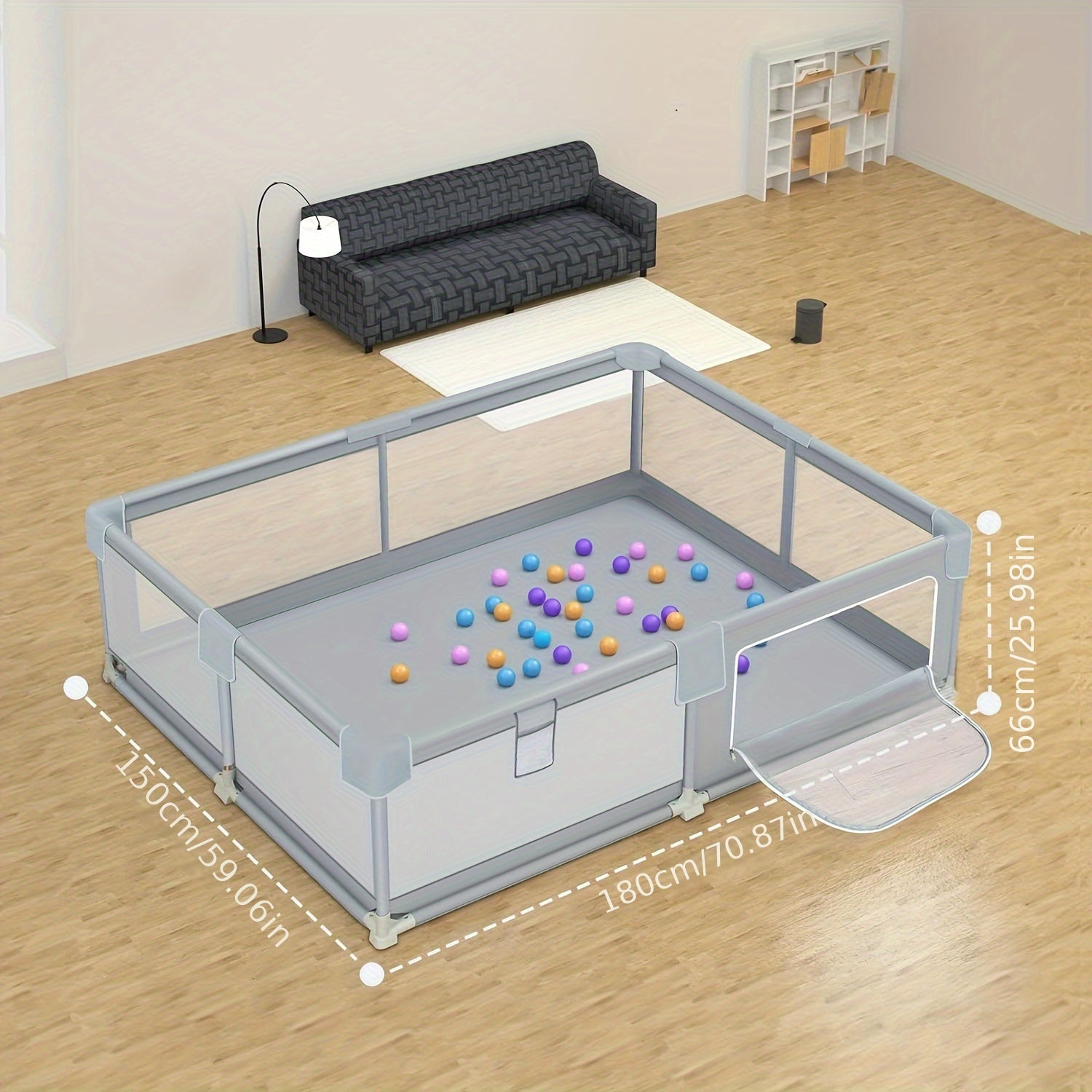 Kids Playpen 150x180cm with Safety Net and Zipper Includes 50 Play Balls and 4 Kid's Rings Indoor Outdoor