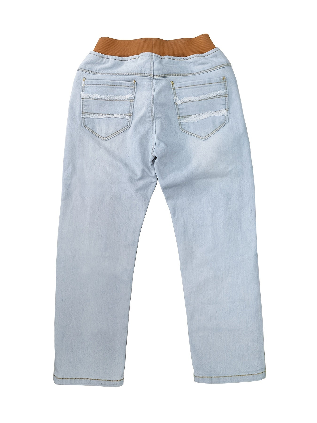 Children's Elastic Waist Denim Jeans with Patches and Pockets for Boys and Girls