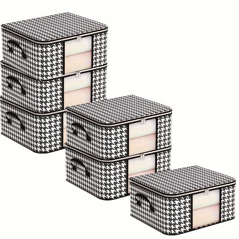 Set of 6 Clothes Storage Bags with Zipper Closure and Handles for Bedding and Closet Organization