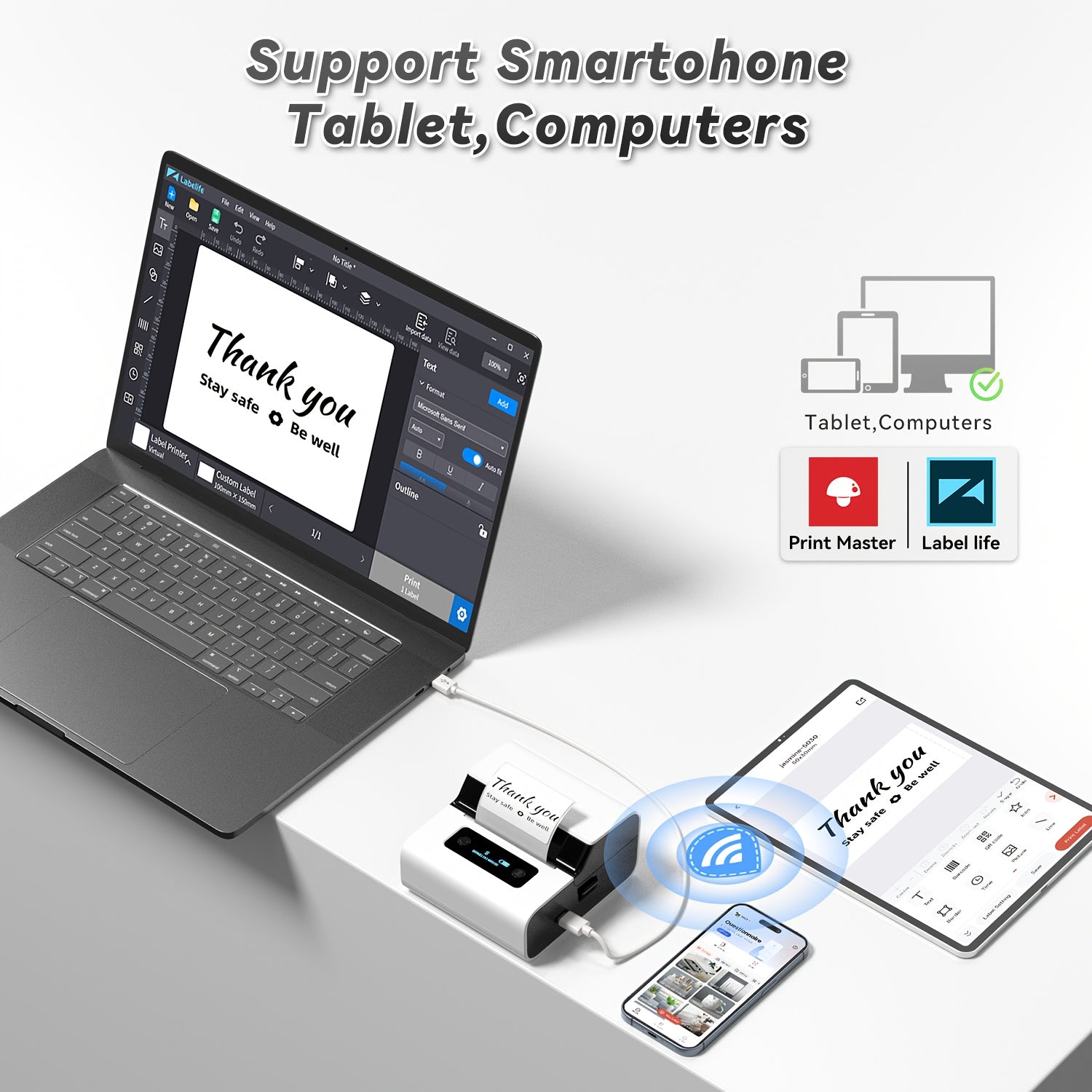Portable Thermal Label Printer 7.62cm USB Barcode Label Maker for Small Business and Office