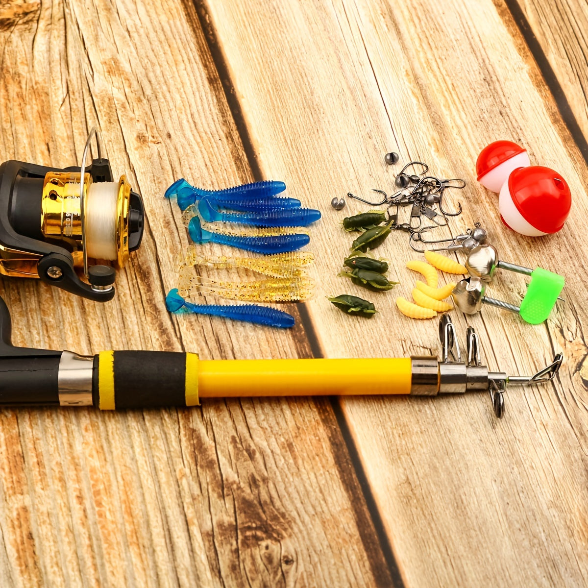 Telescopic Fishing Rod and Reel Combo with Soft Bait Set, Carry Case, Medium Fast Action, Fiberglass, Yellow