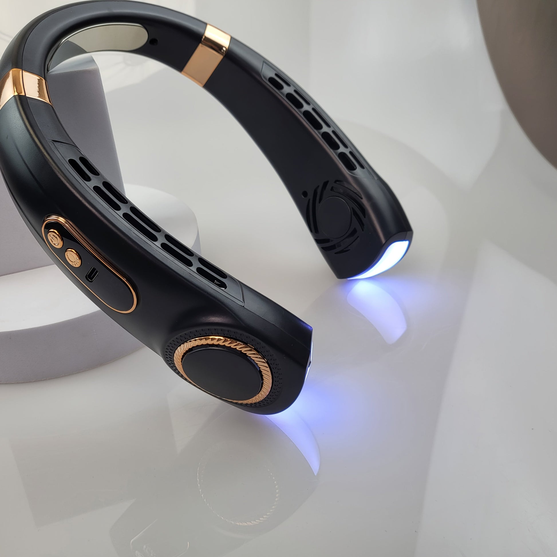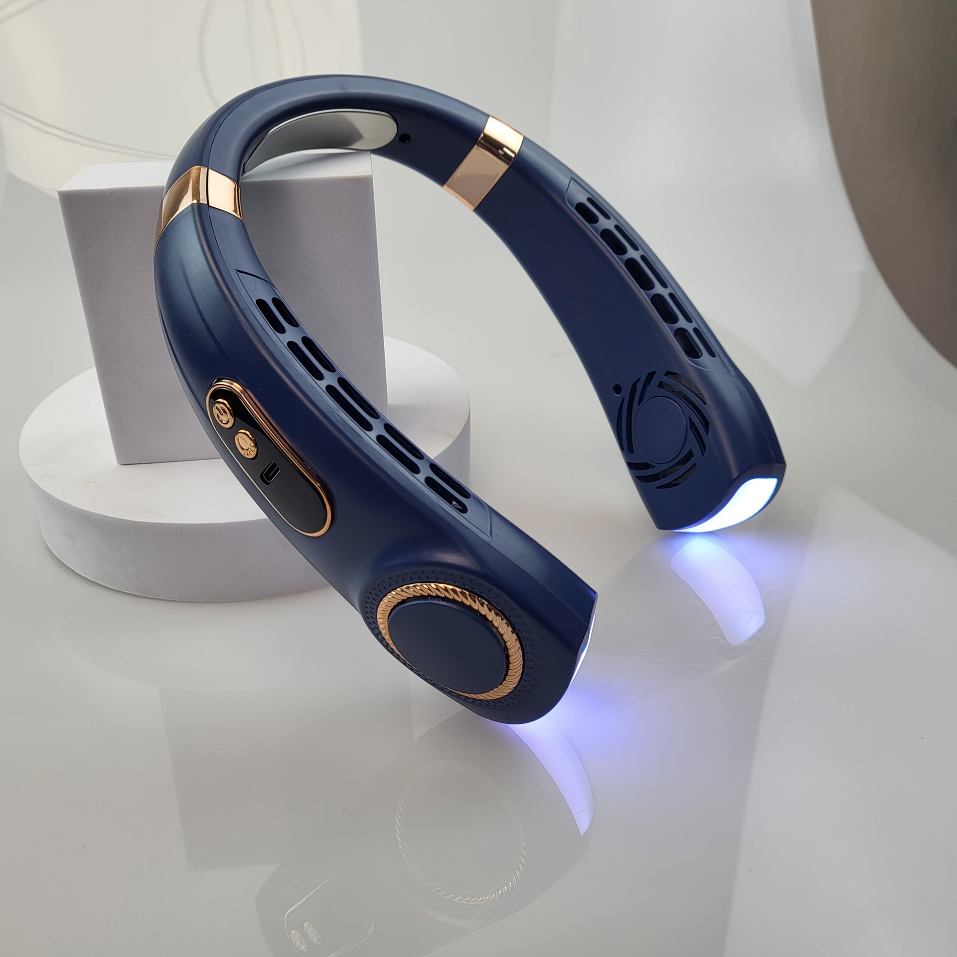 Mini Neck Fan with 5-Speed USB Charging, Colorful LED Lights, 360° Cooling for Outdoor Activities