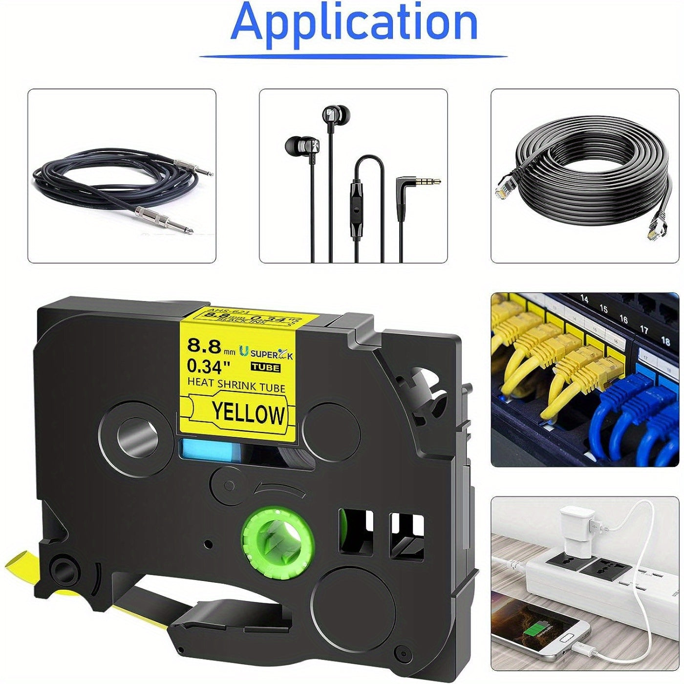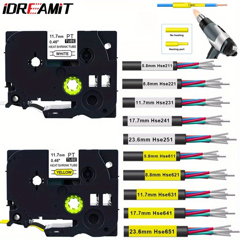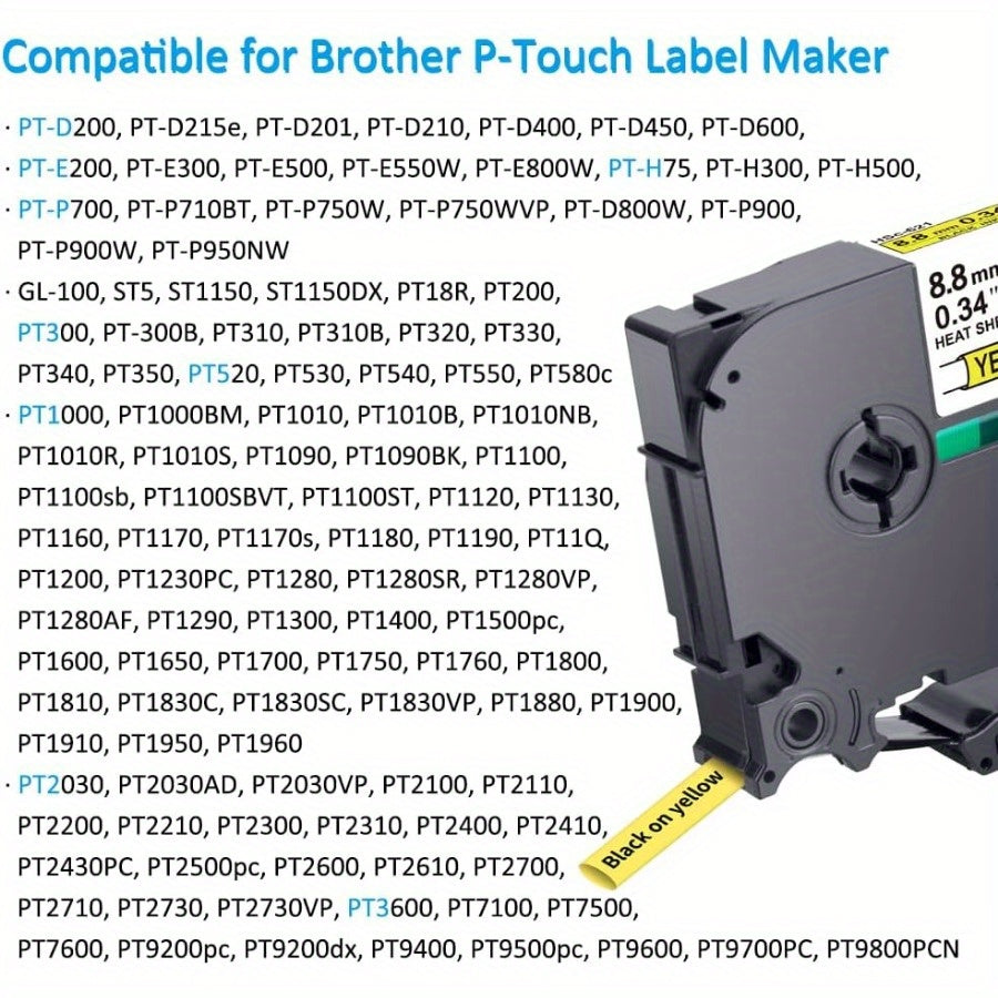 Heat Shrink Tubing Label for Wire Cable Black on Yellow 11.7mm 1.5m