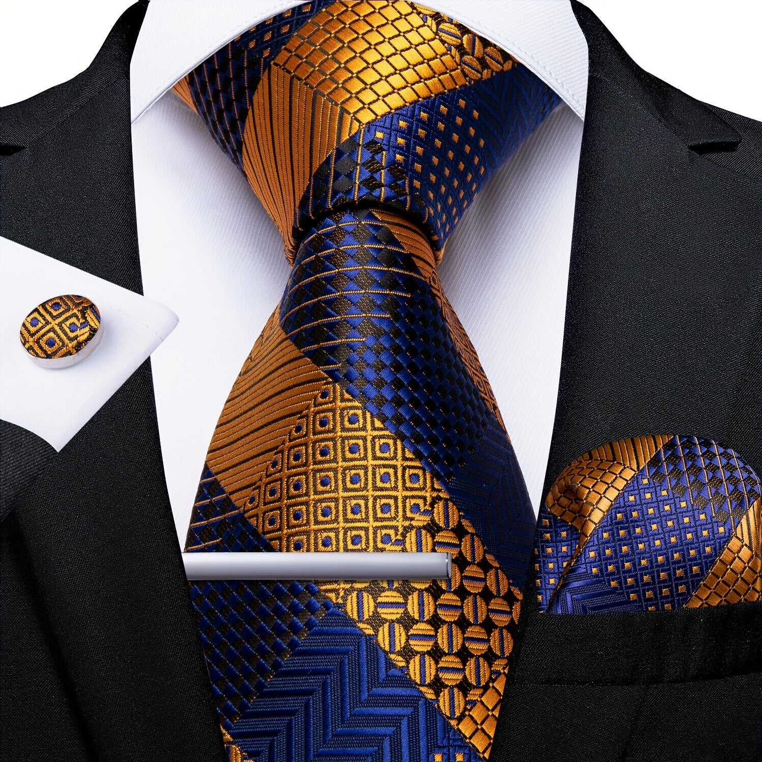 Men's Accessories Set 5 Pieces Tie Cufflinks Handkerchief Pocket Square for Wedding Business Party