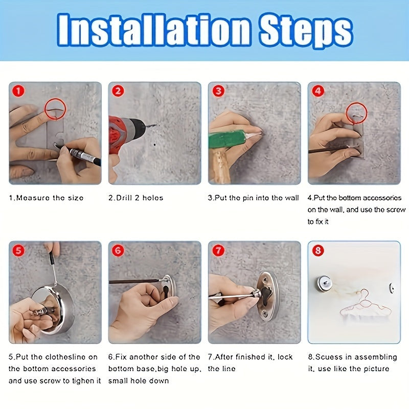 Adjustable Stainless Steel Wall-Mounted Laundry Line for Indoor Use