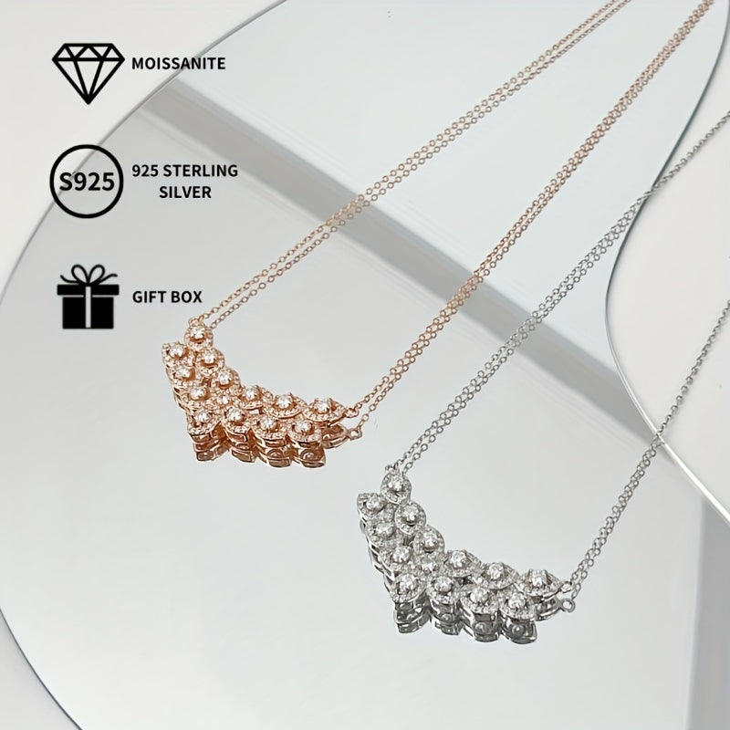 Women's Sterling Silver Pendant Necklace with Moissanite Inlay 1.3ct Elegant Jewelry