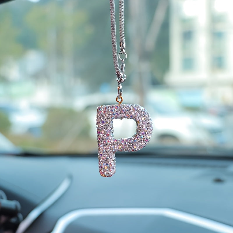 Crystal Bling Alphabet Letter Pendant for Vehicle Mirror with Rhinestones and Metal Material