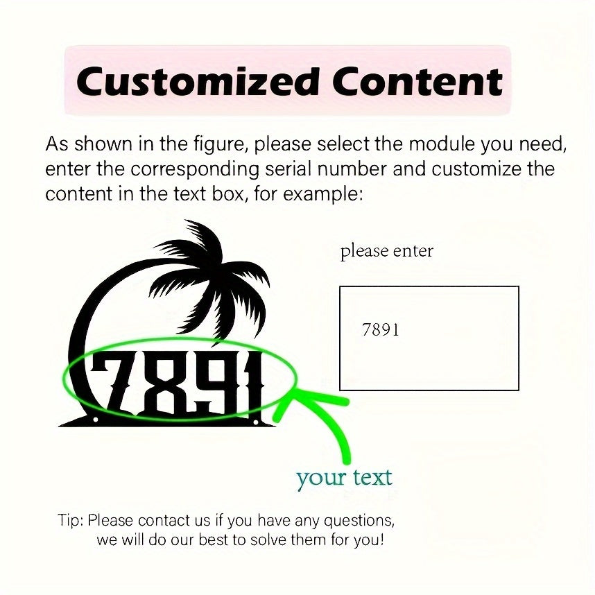 Customized Metal Sign with Palm Tree Design House Number Wall Decor