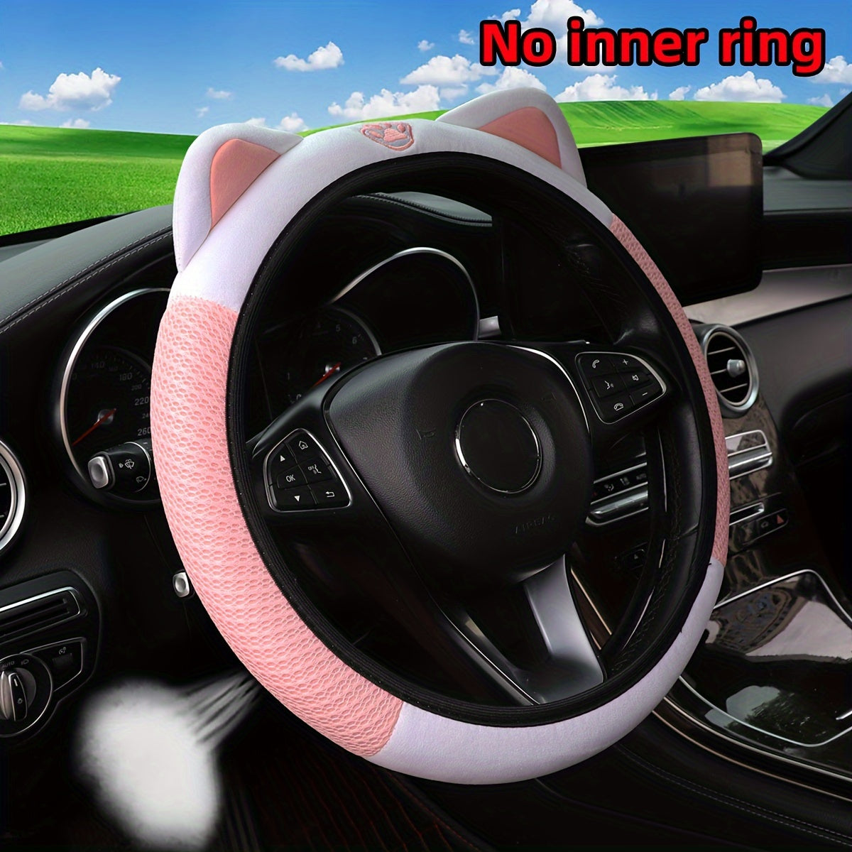 Cute Pink White Cat Steering Wheel Cover Breathable Mesh Stretchable Car Accessory