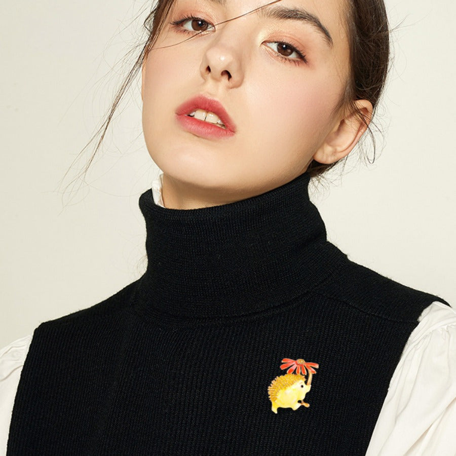 Dainty Hedgehog and Daisy Brooch Pin Cartoon Animal Alloy Jewelry for Clothing Accessories