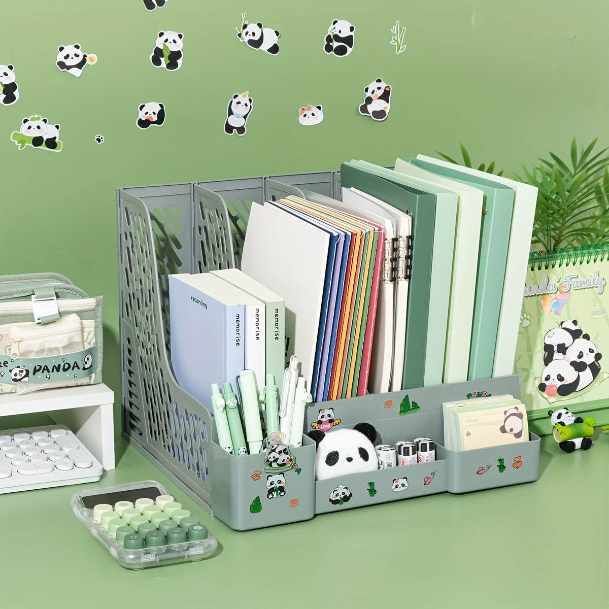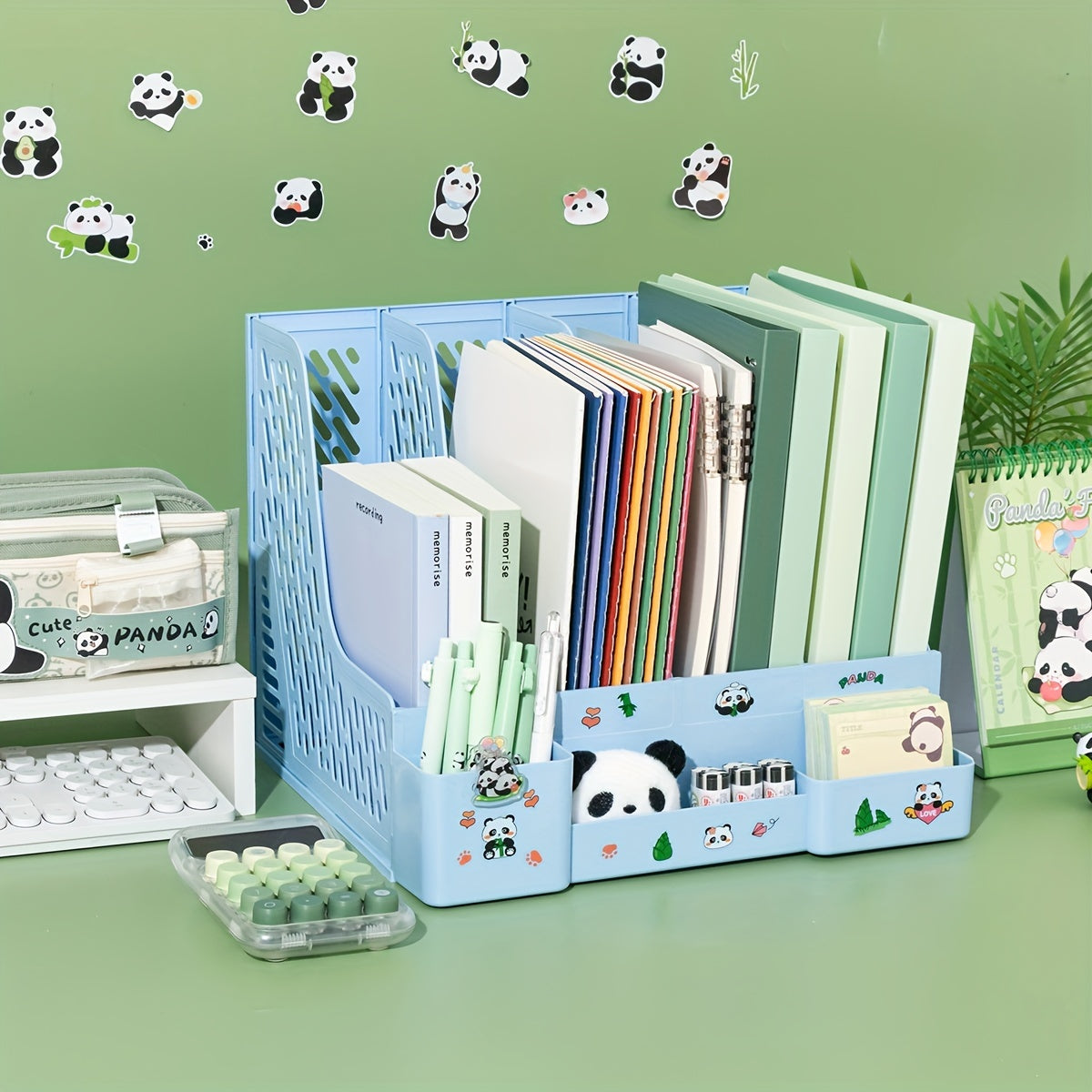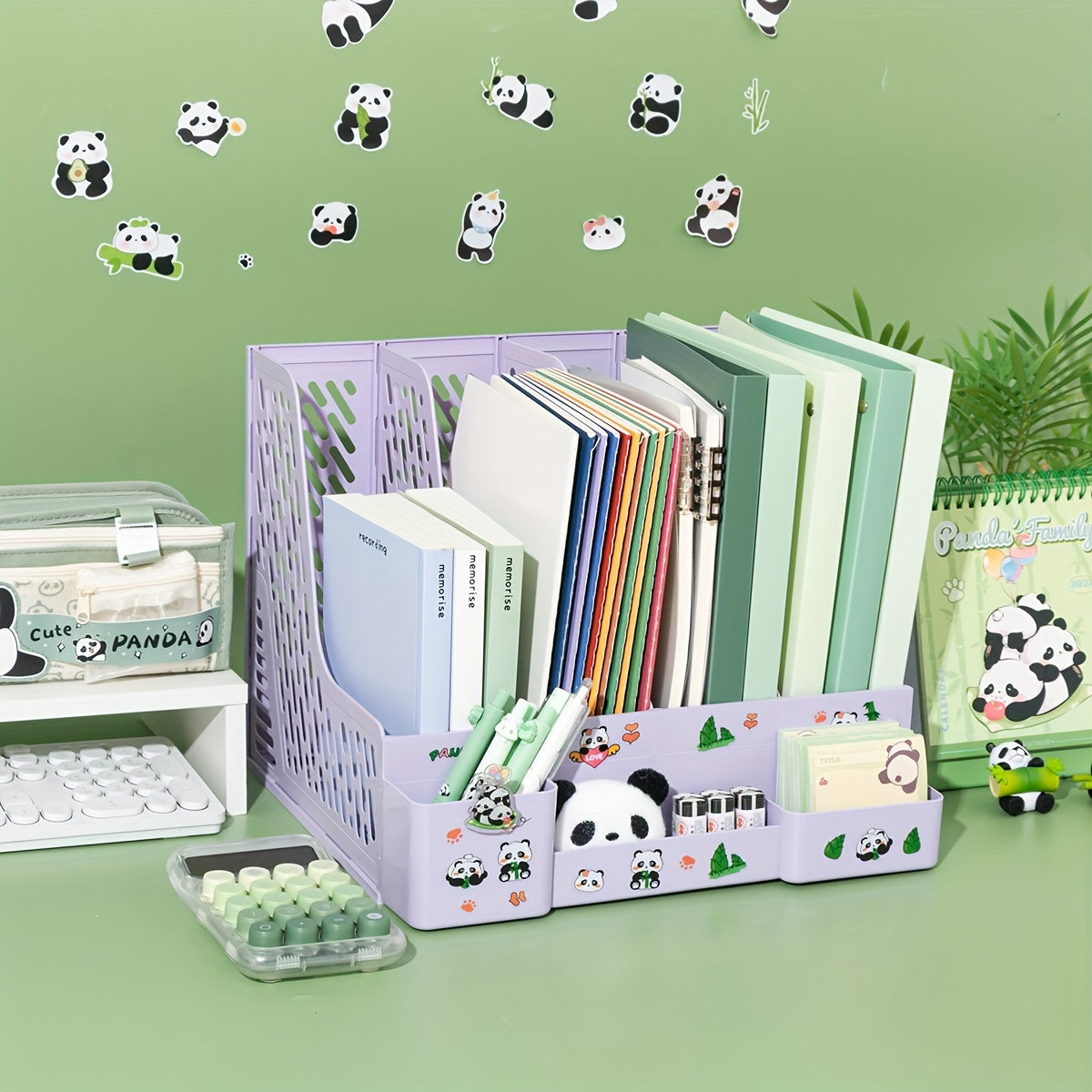 Desktop File Organizer with Panda Theme 4 Slots Detachable Tiered Shelves PP Material Office Storage