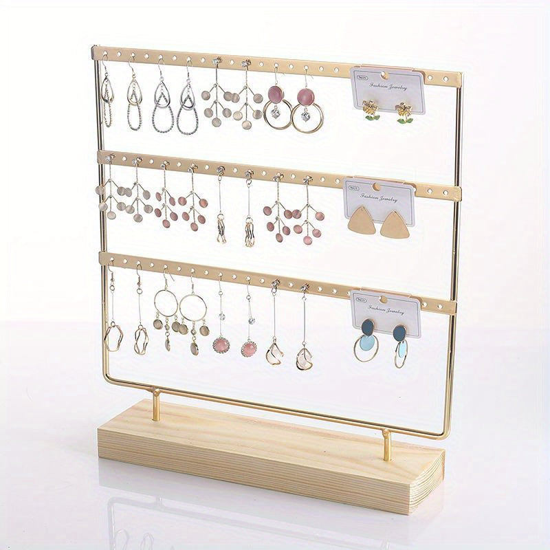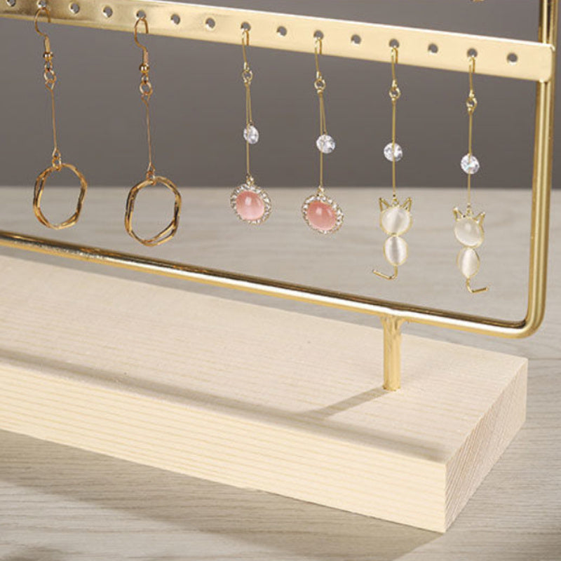 Wooden Earring Display Stand with Iron Hanging Jewelry Organizer for Studs