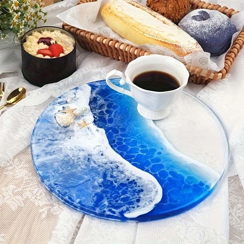 Round Silicone Mold for Epoxy Resin Coasters and Trays Marbled Blue Purple White