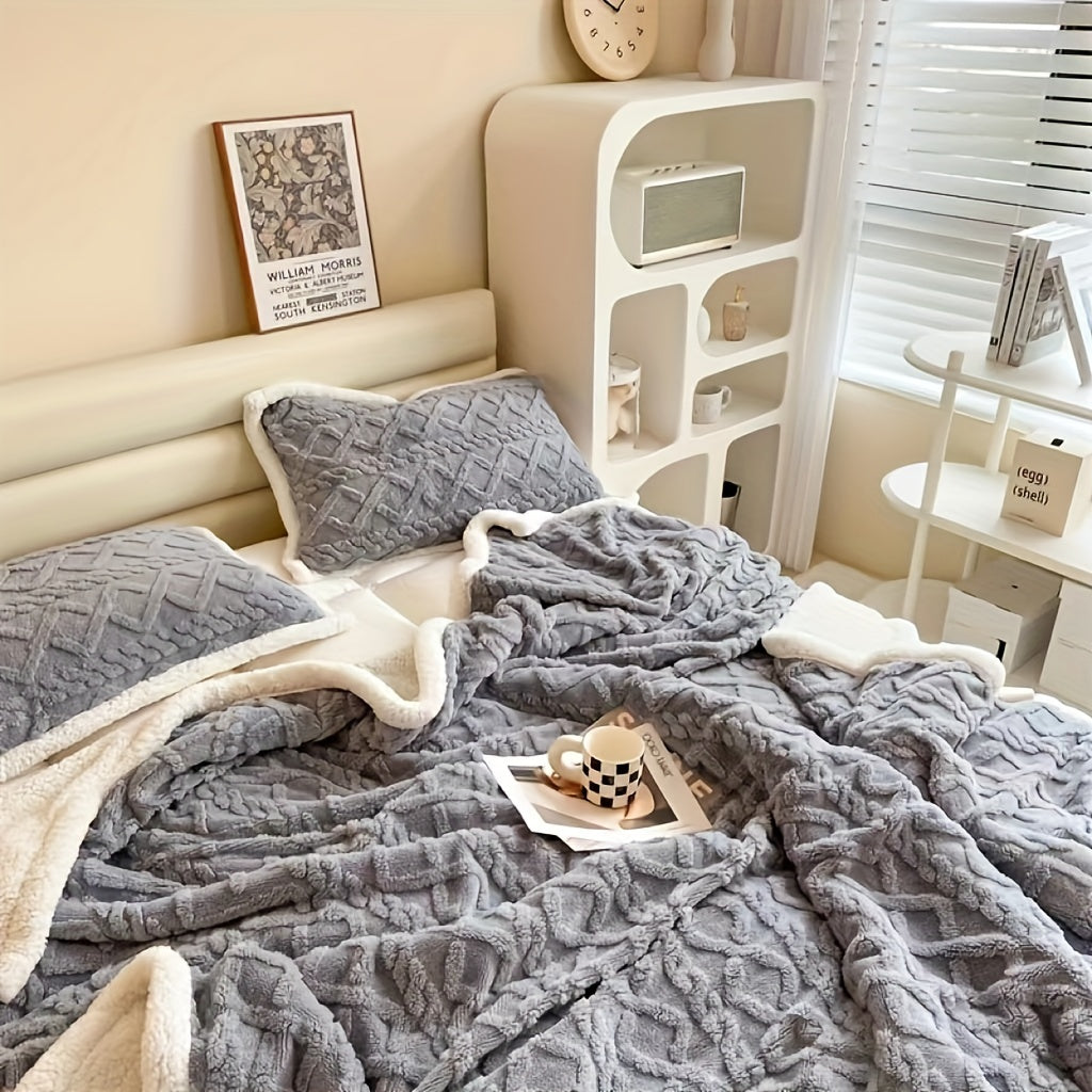 Double-Sided Fleece Taffeta Blanket for Couch Sofa Bed Camping Travel Blue