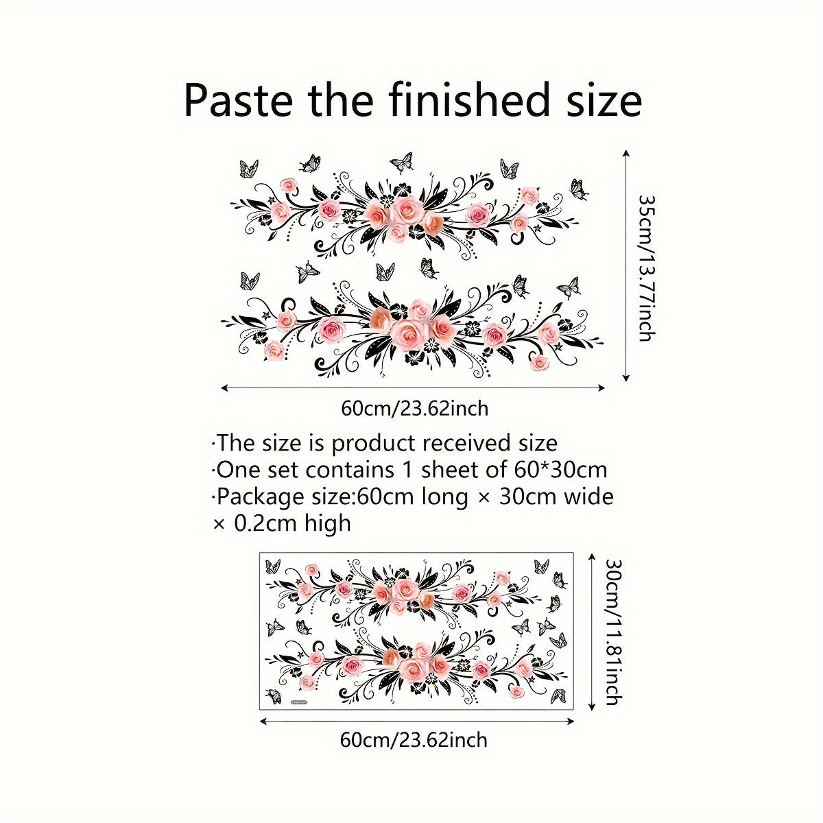 Pink Rose and Black Butterfly Wall Decals for Bathroom and Living Room