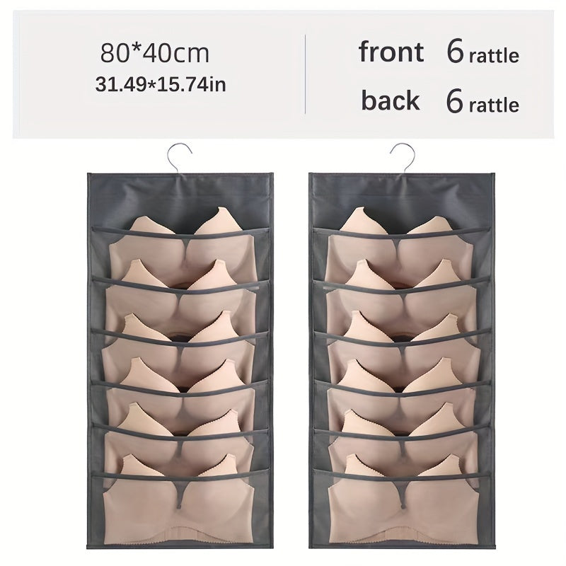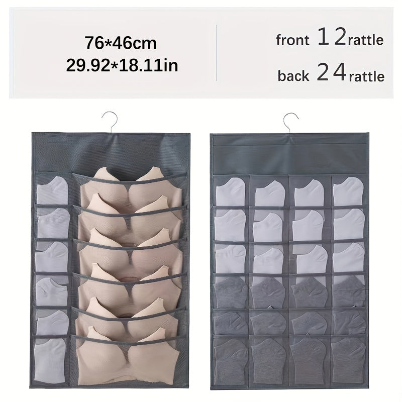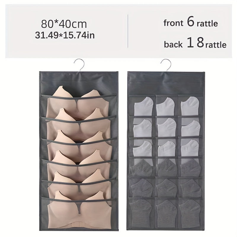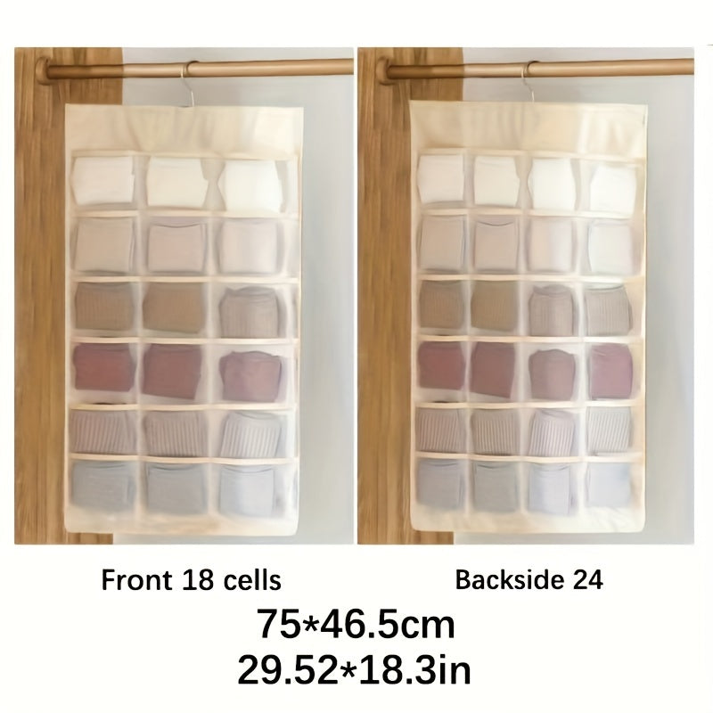 Dual-Sided Hanging Organizer for Underwear Socks Non Woven Foldable Grey Pink Ivory