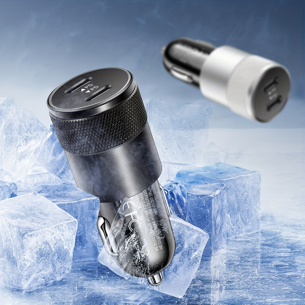 Dual USB-C Car Charger 60W Fast Charging Adapter with Quick Charge 3.0