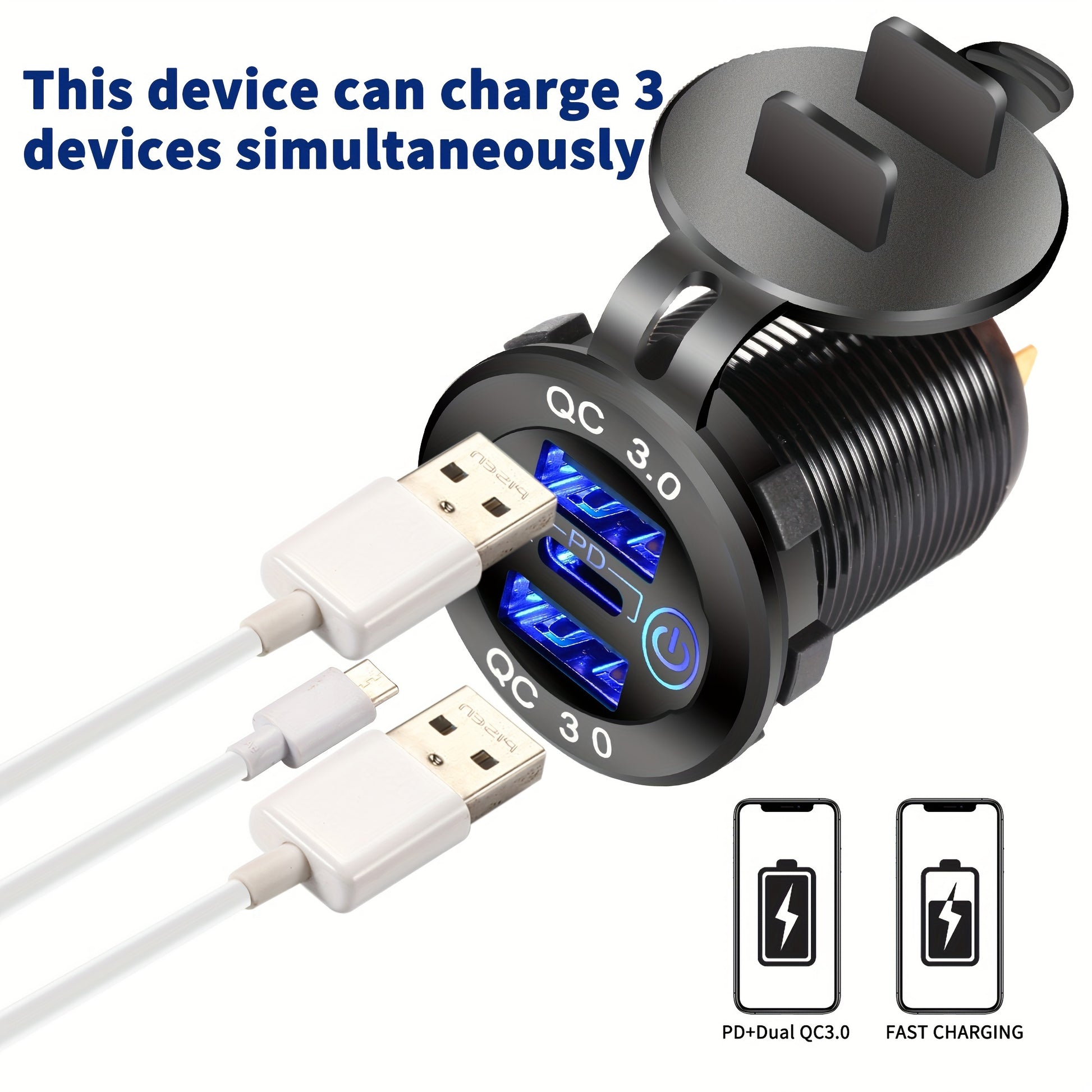 Dual USB Fast Charging Socket PD Type C QC3.0 Car Charger 12V 24V