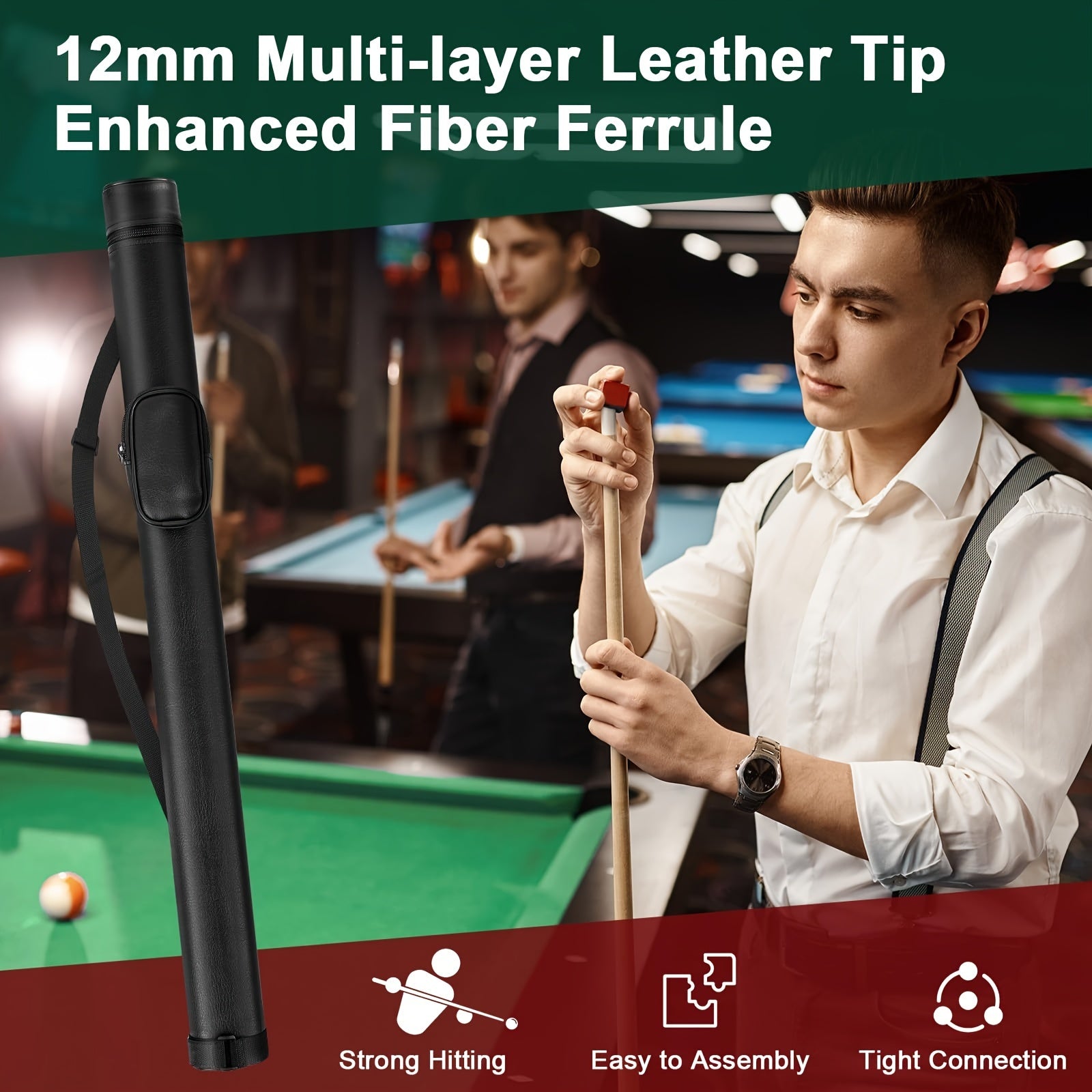 Durable Black PU Billiard Cue Case with 2-Hole Holder and Carrying Bag