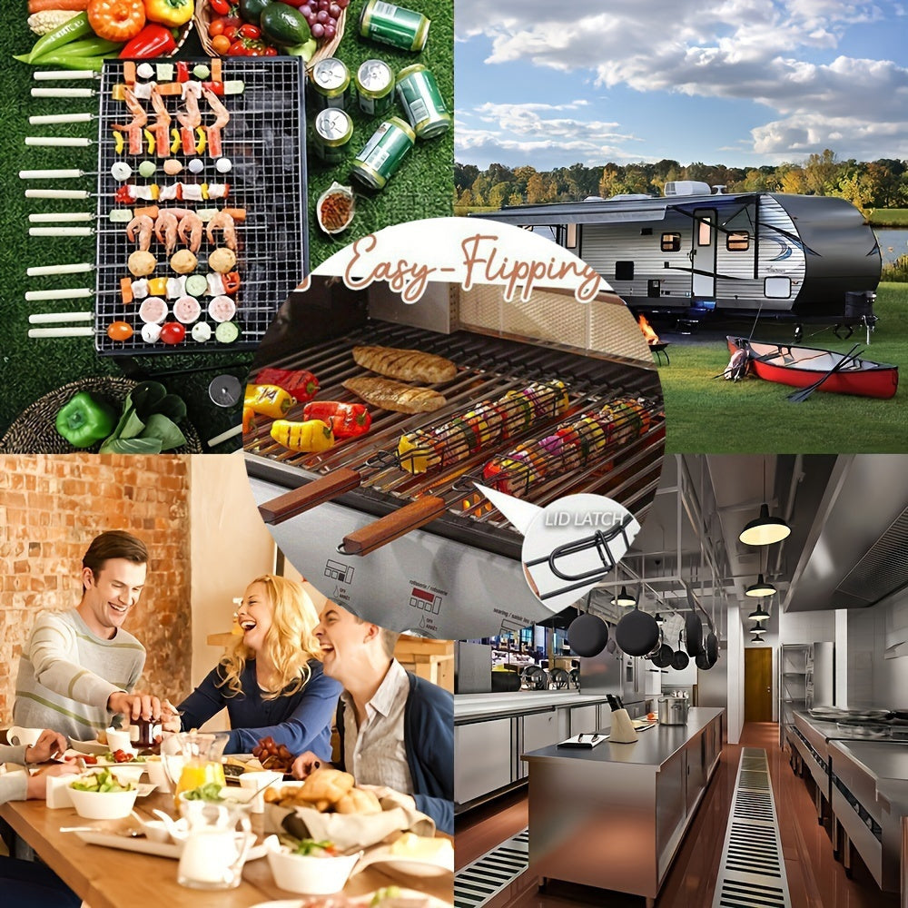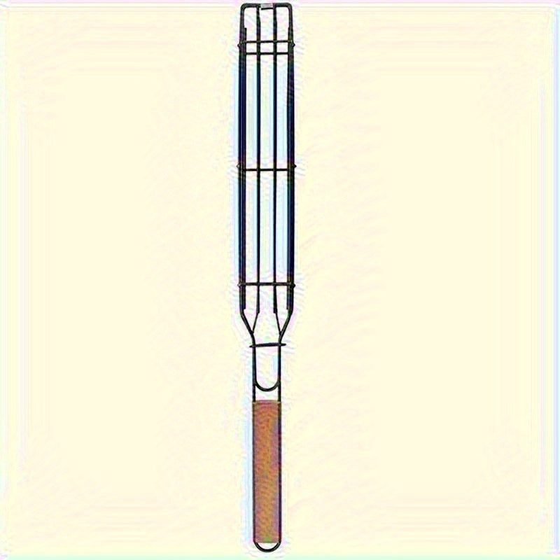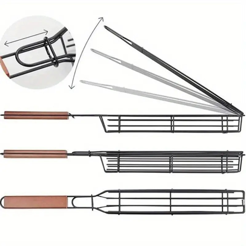 Heavy Duty Nonstick Steel BBQ Grill Basket with Flip Lid and Rosewood Handle 49cm