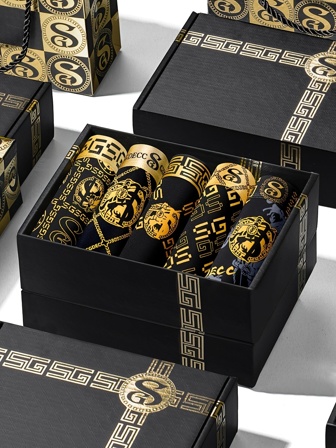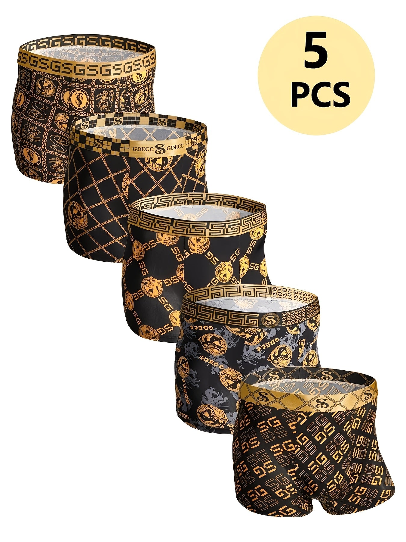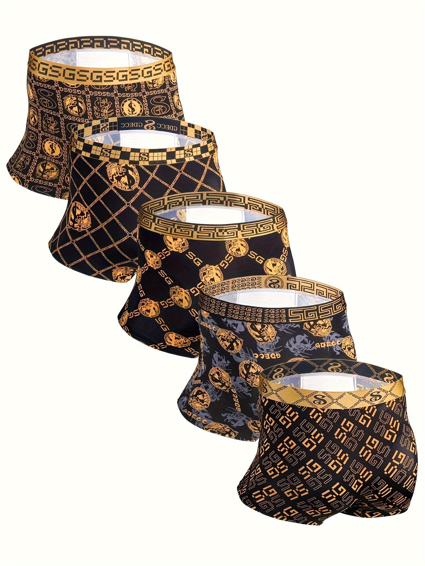 Men's Boxer Briefs 5 Pack Breathable Stretch Nylon Geometric Print Comfortable
